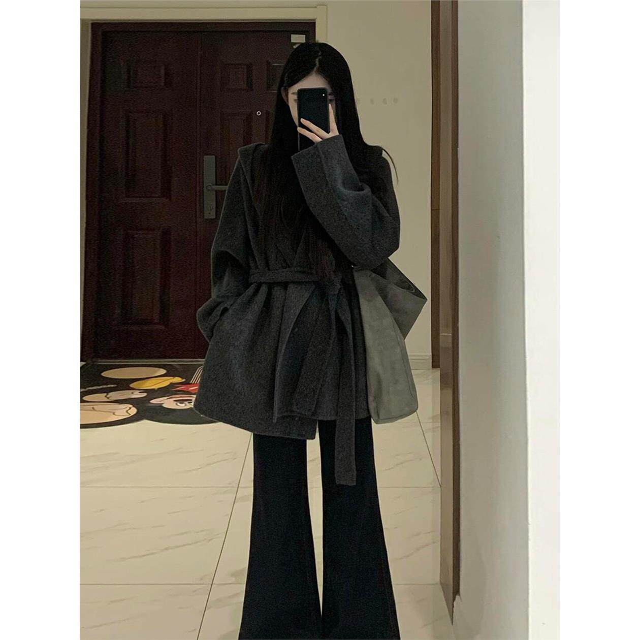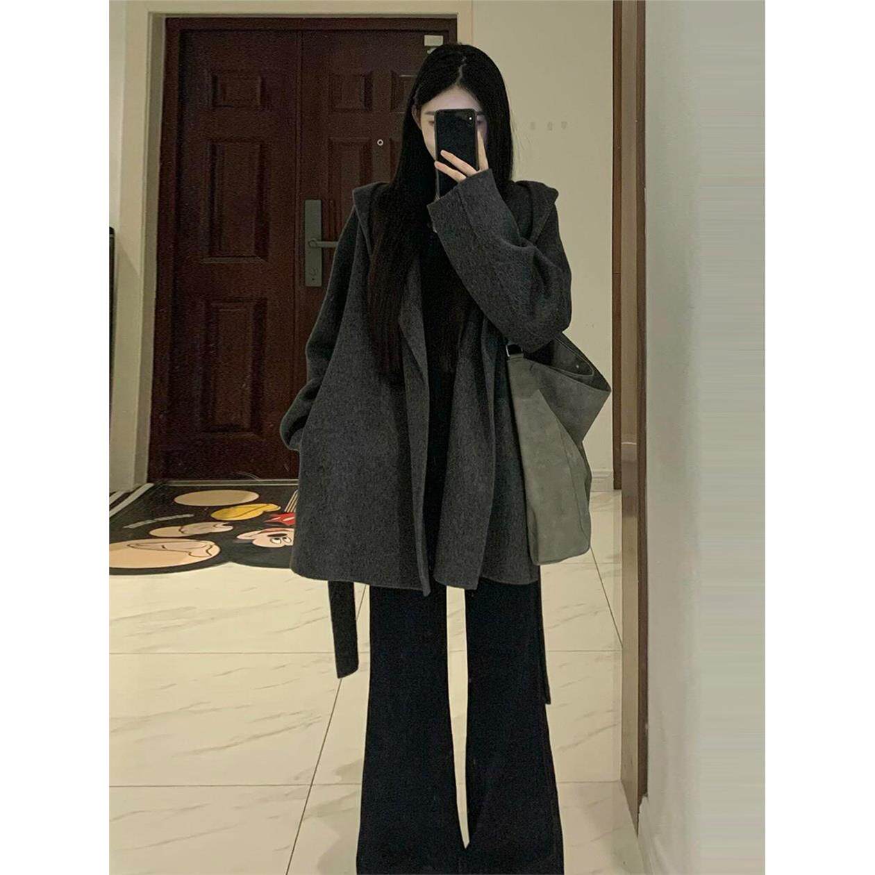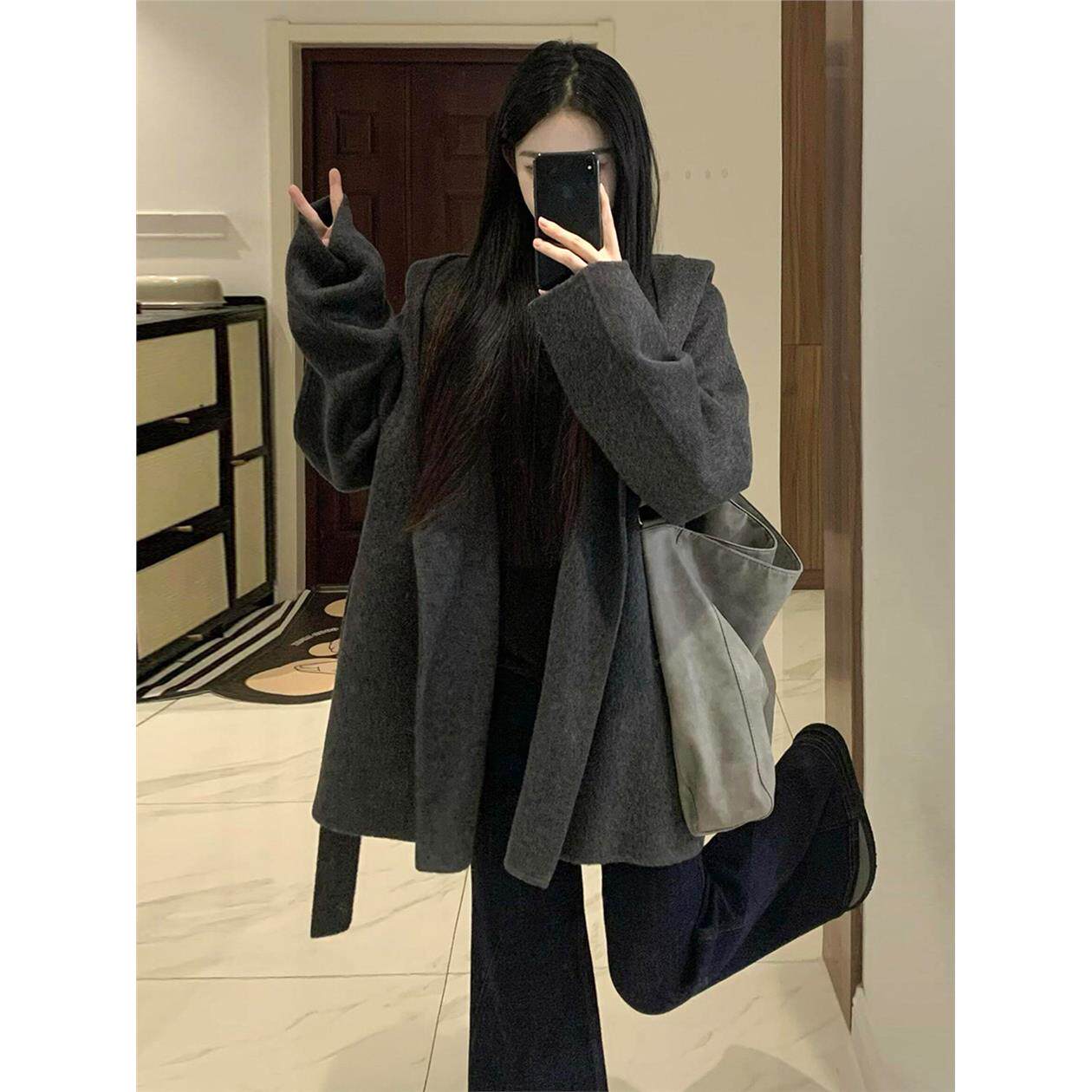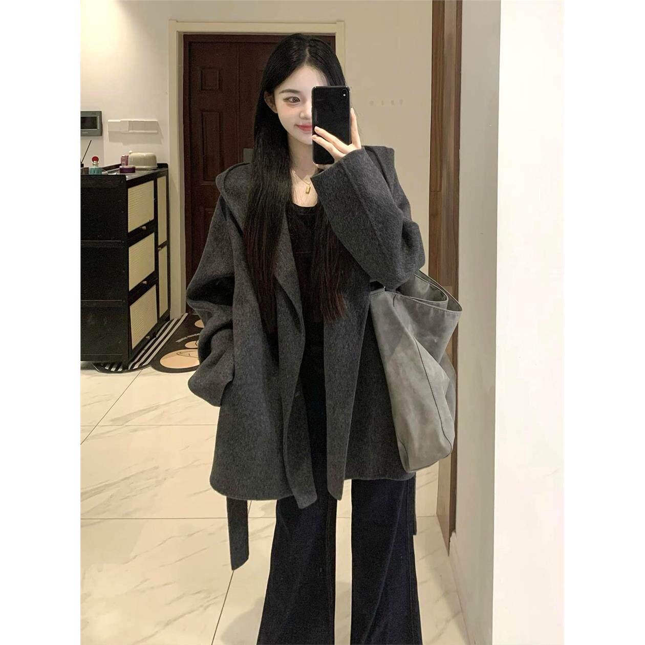灰色短款双面羊绒毛呢子大衣外套女2025年秋冬季新款高级感小个子