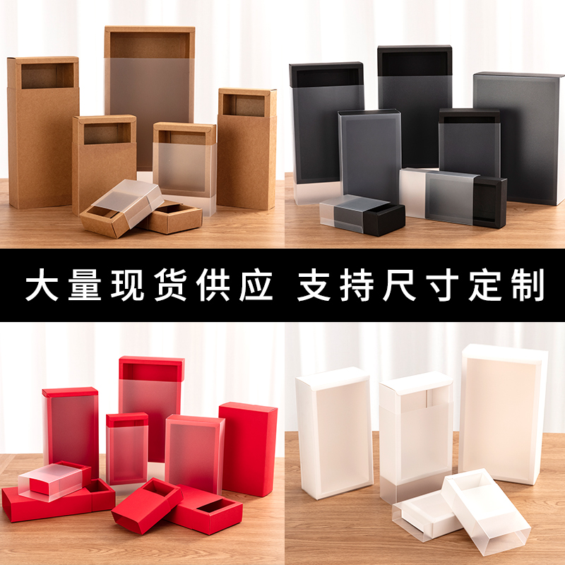 现货透明抽屉牛皮纸盒pvc透明礼品盒定制马卡龙蛋黄酥烘焙包装盒