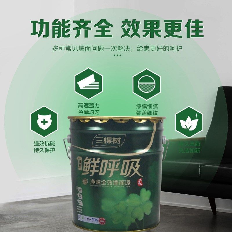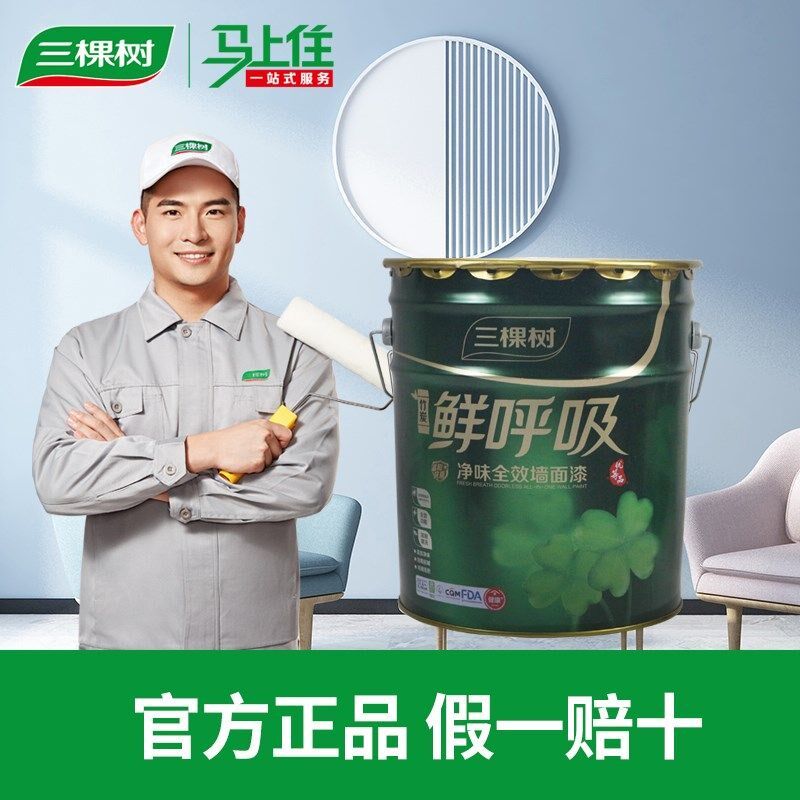 三棵树鲜呼吸乳胶漆净味全效墙面漆水性环保油漆自刷漆白色哑光漆