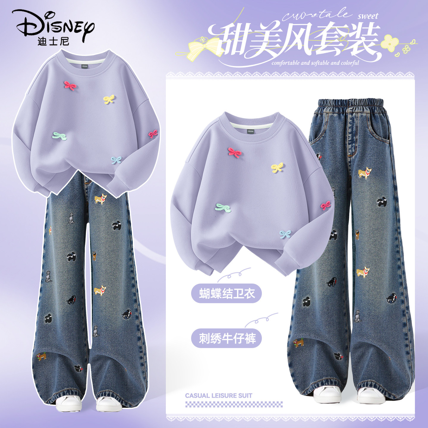 迪士尼女童春装套装今年流行卫衣2026新款女孩中大童春秋儿童衣服