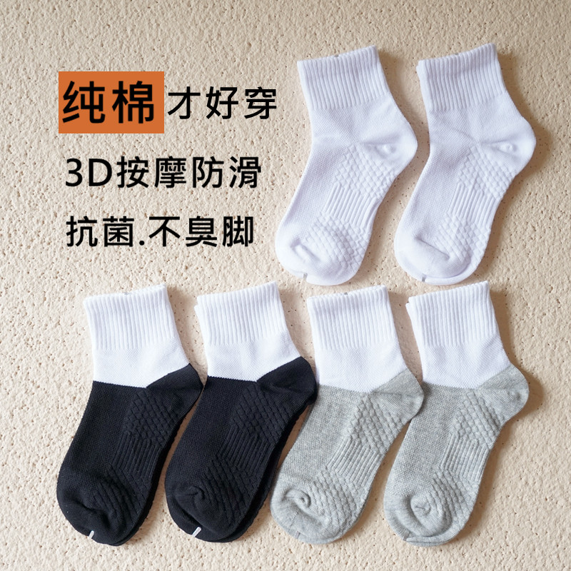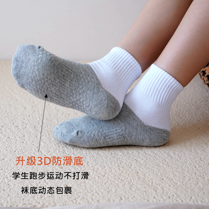 儿童袜子白色黑底男女童学生袜春夏纯棉防臭防滑跑步青少年中筒袜