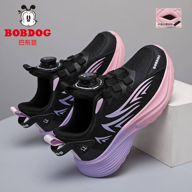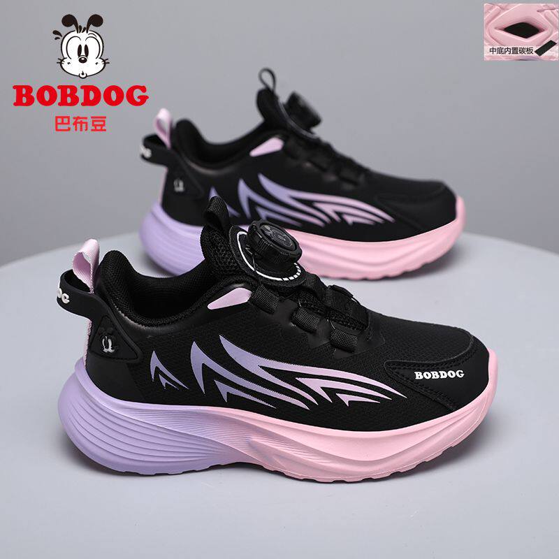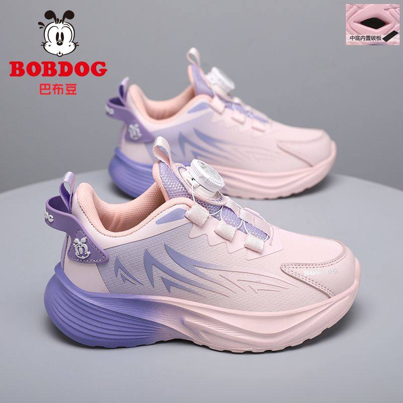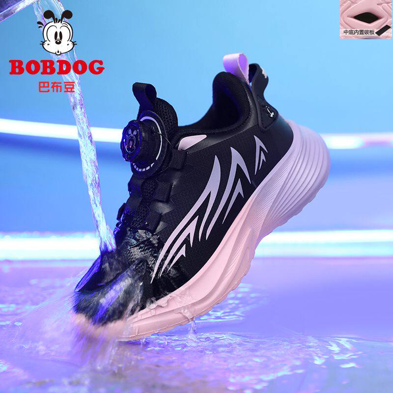巴布豆童鞋女童鞋子春秋新款儿童运动鞋皮面防水中大童碳板跑步鞋