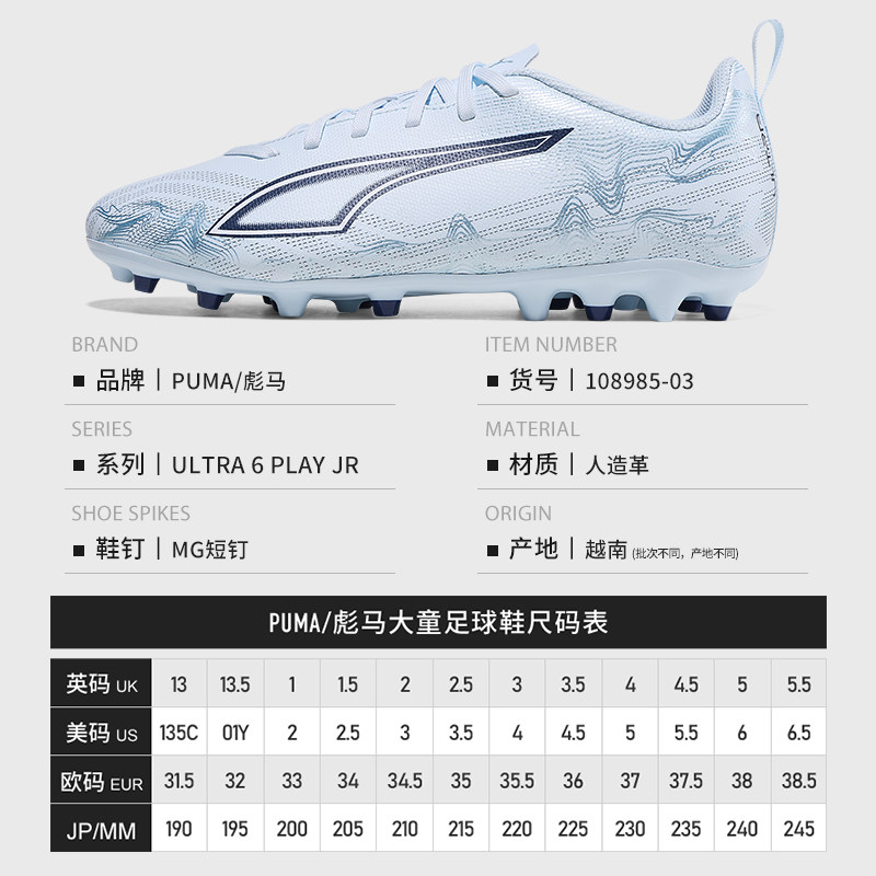 311线报网描述:Puma彪马儿童足球鞋ULTRA6MG短钉