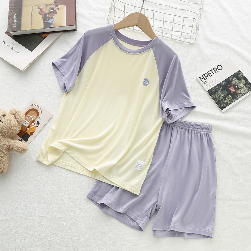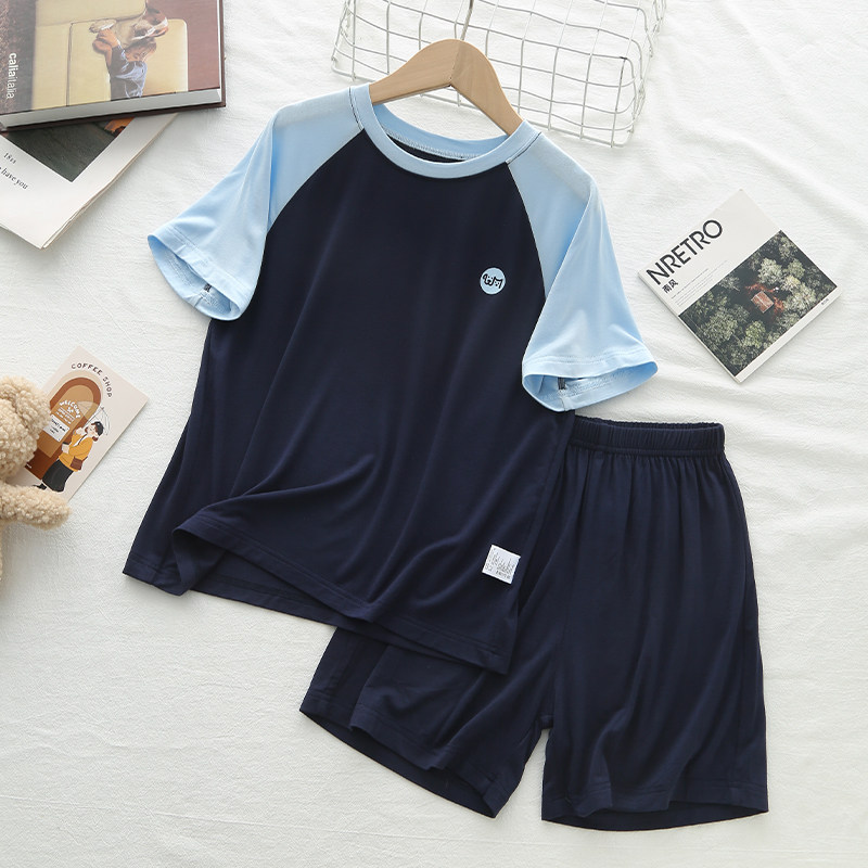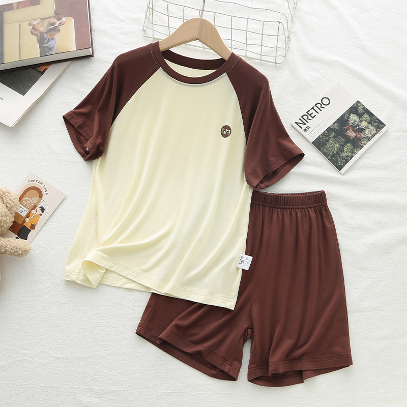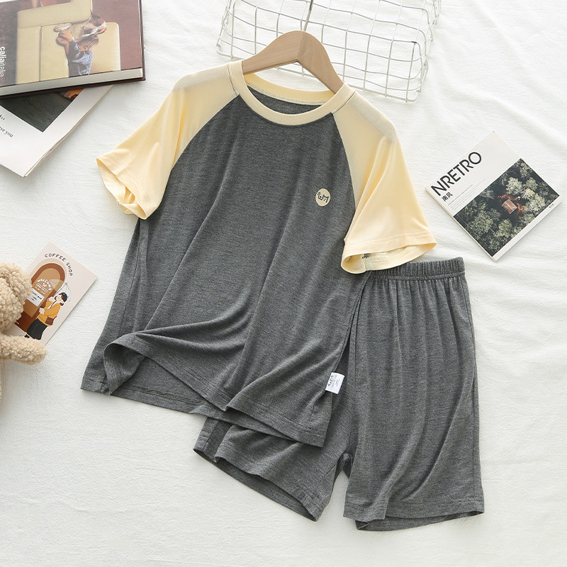 「高级舒适感」夏季儿童莫代尔睡衣男孩运动套装短袖男女童空调服