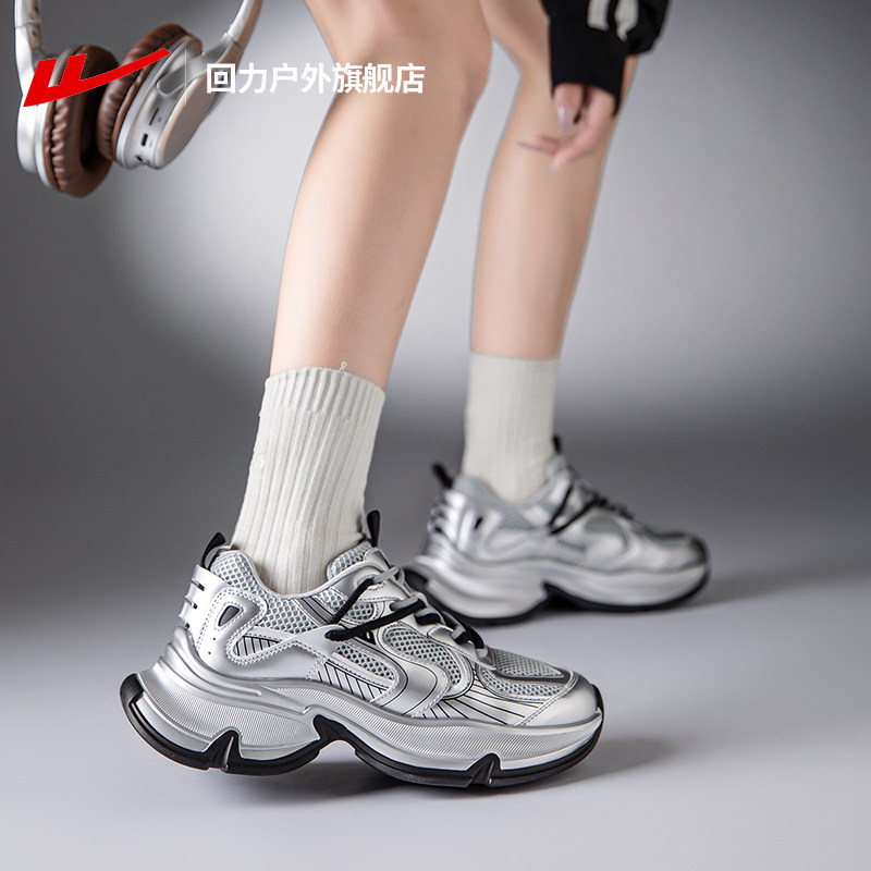 311线报网描述:回力银色老爹鞋女小个子增高2025秋季新款潮
