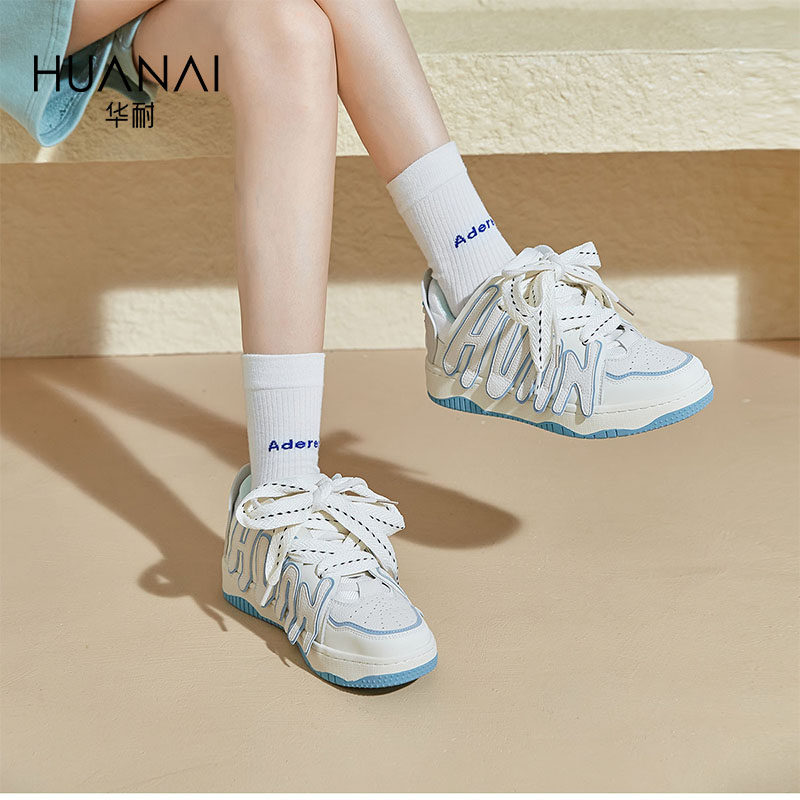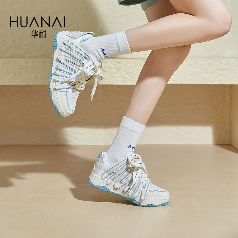 华耐2025夏季鞋子女百搭鞋厚底增高休闲运动面包鞋女学生板鞋女鞋