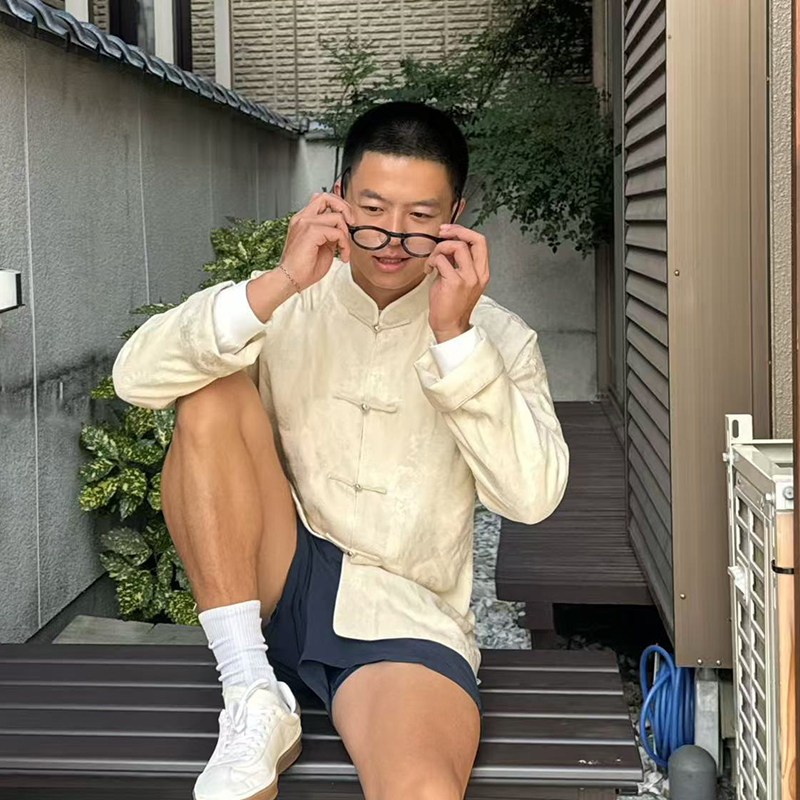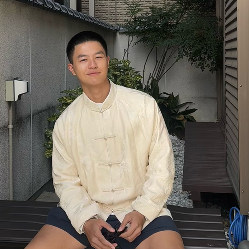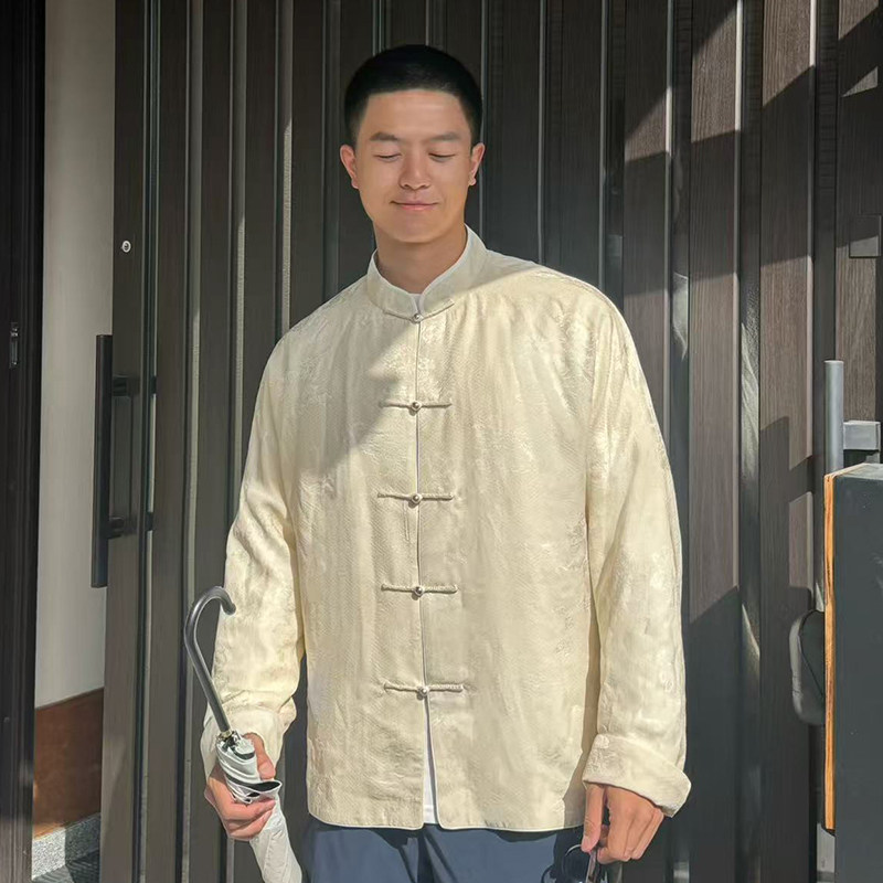 云息白三重门真丝花罗唐装新中式冬复古国潮盘扣外套新款上衣长袖