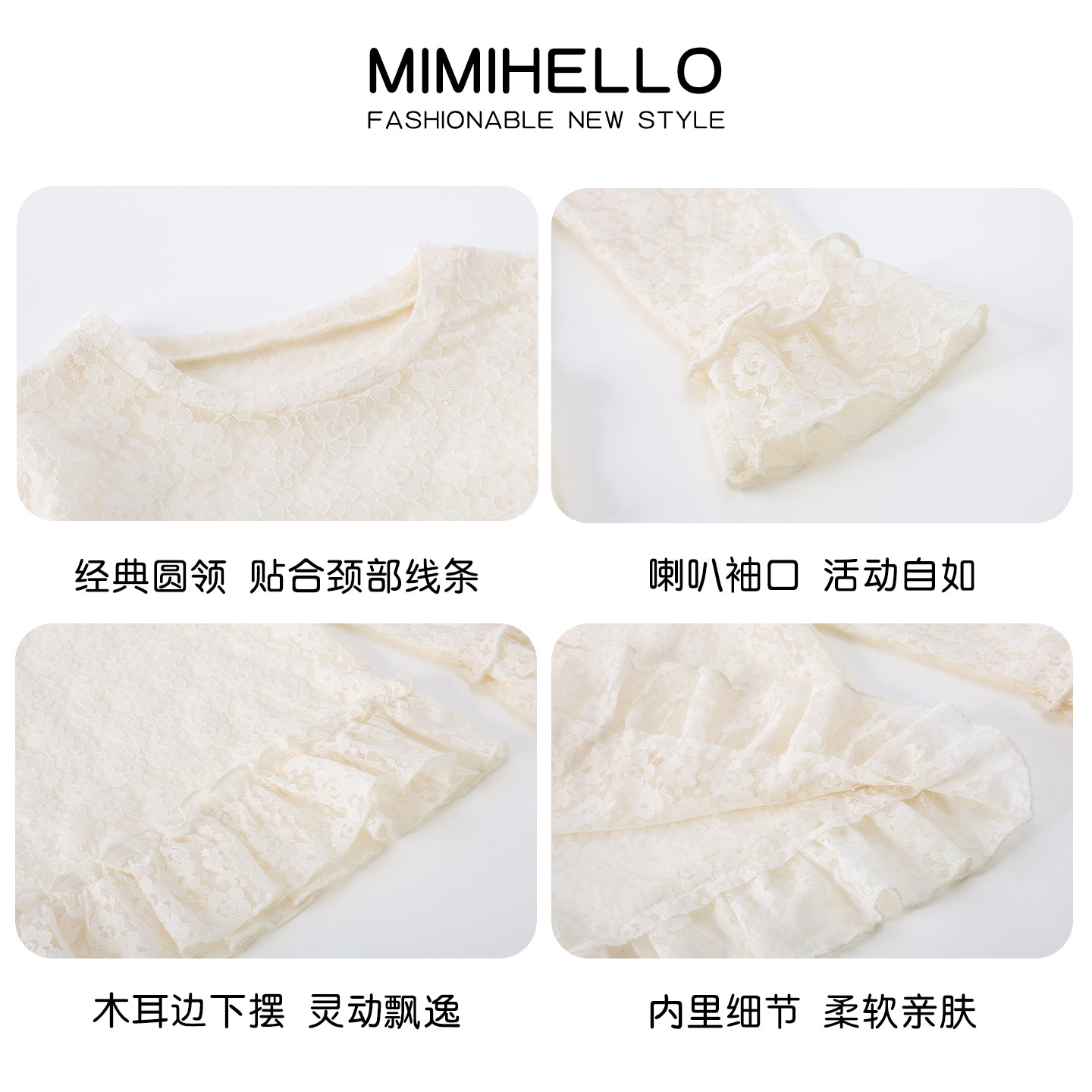 311线报网描述:叠搭内搭花边蕾丝长袖打底衫