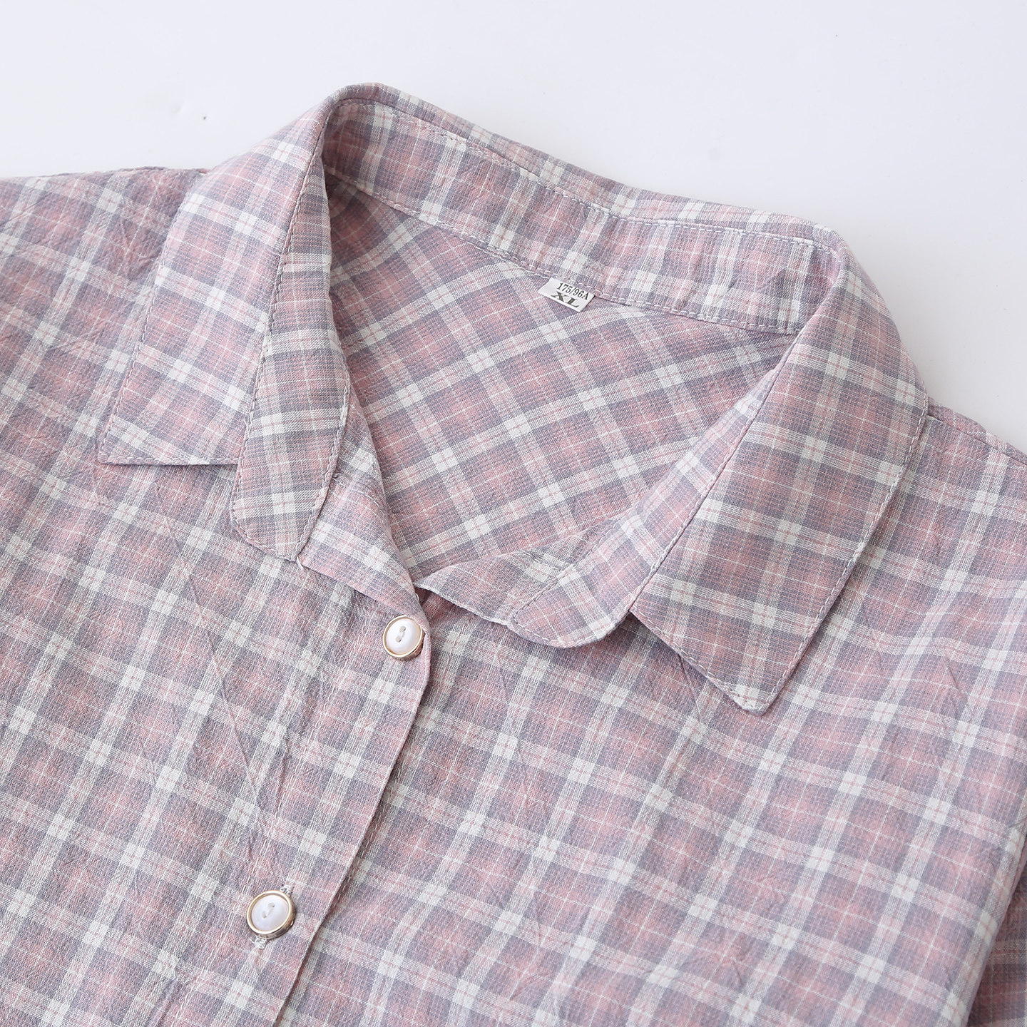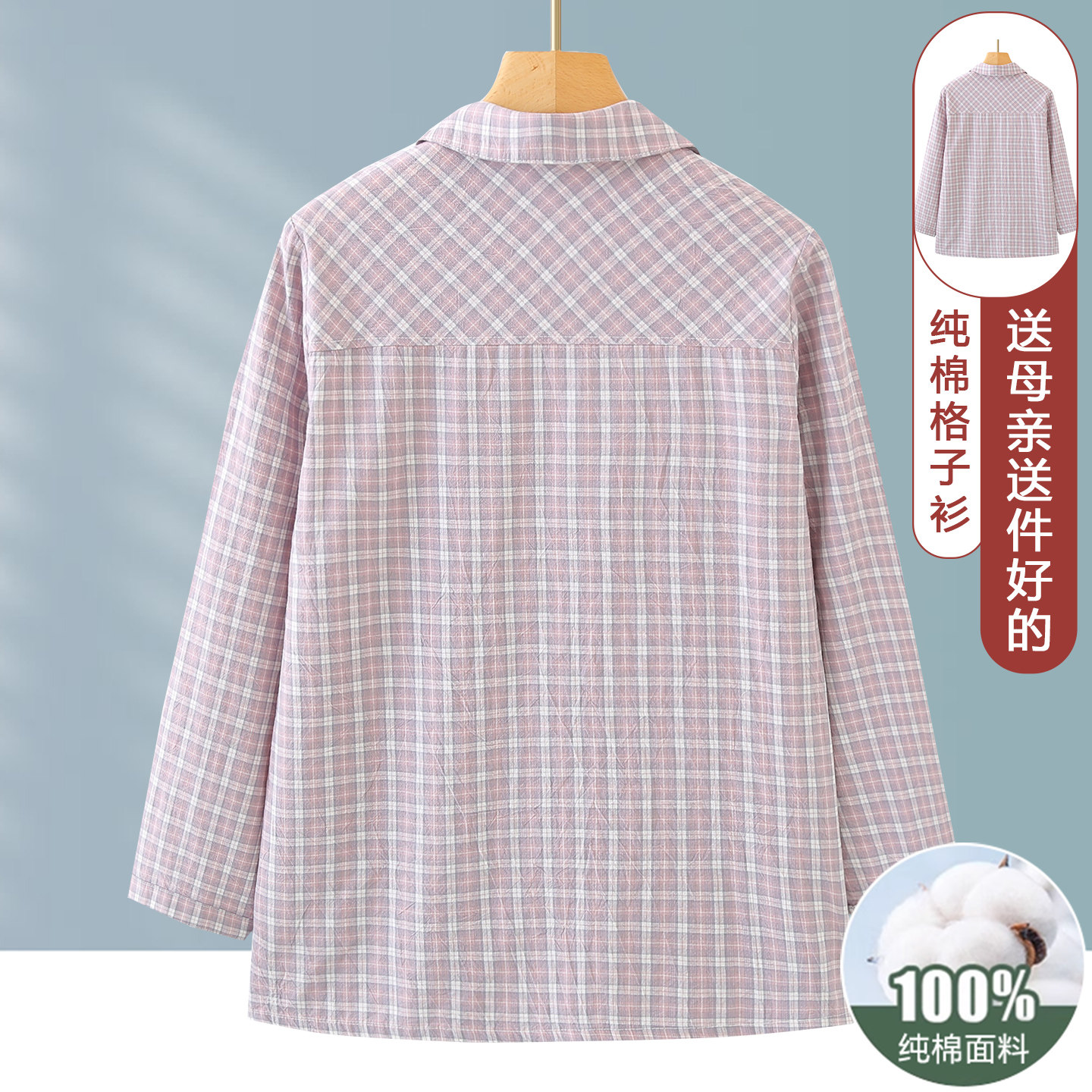 格子衬衫女款中老年妈妈春装100%纯棉上衣宽松休闲春秋全棉衬衣女