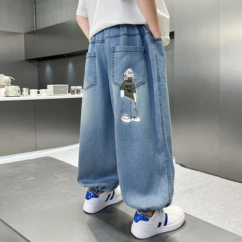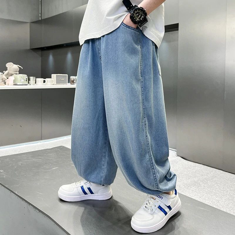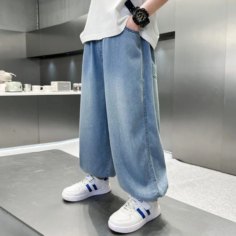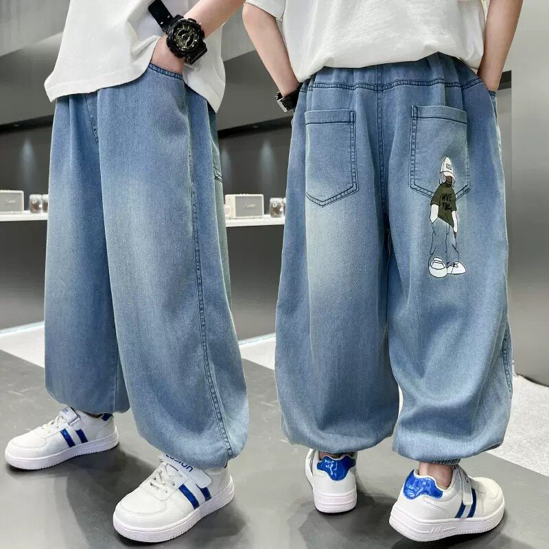 儿童装男童夏装薄款裤子2026新款夏季大童冰丝牛仔裤夏款防蚊长裤