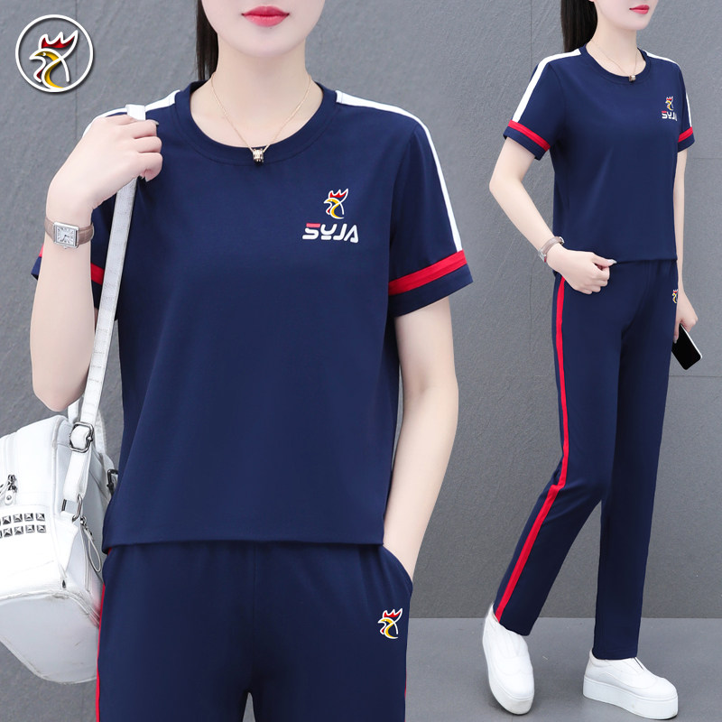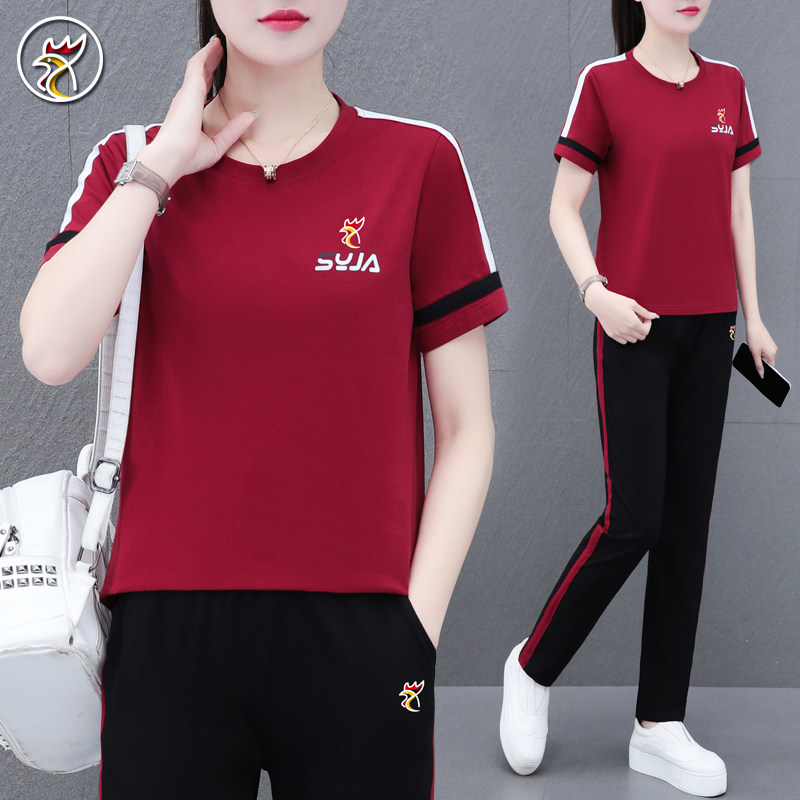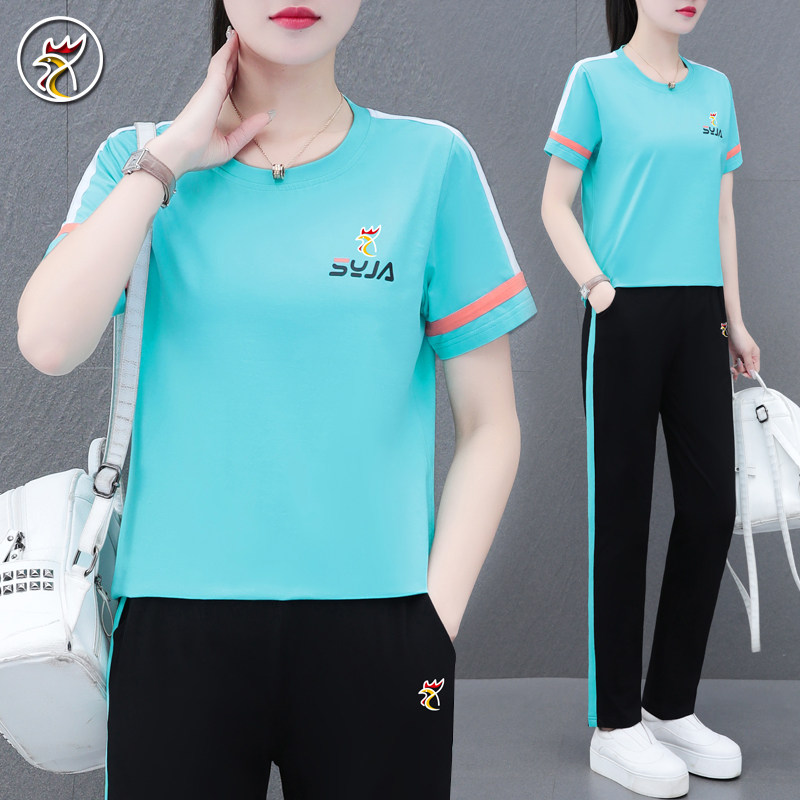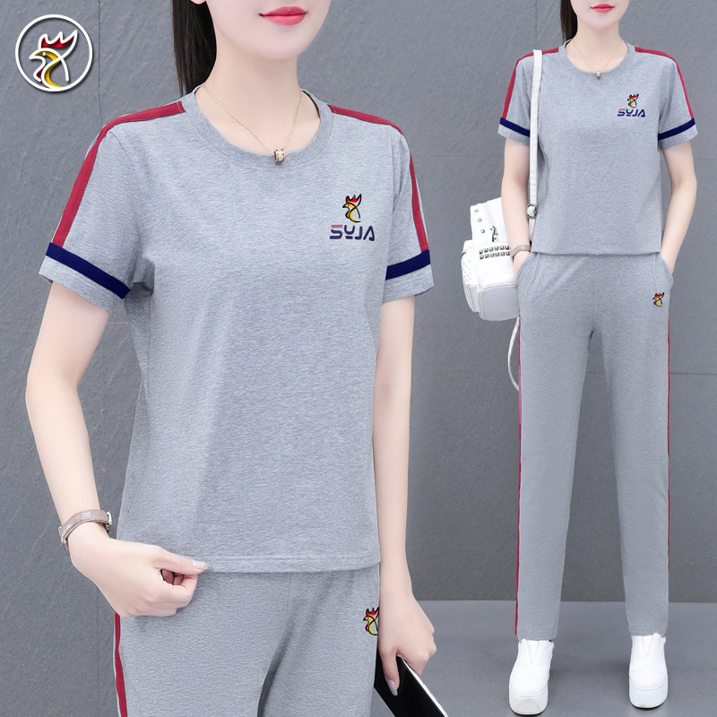 【品牌】纯棉运动套装女士夏季短袖薄款妈妈休闲跑步服大码两件套