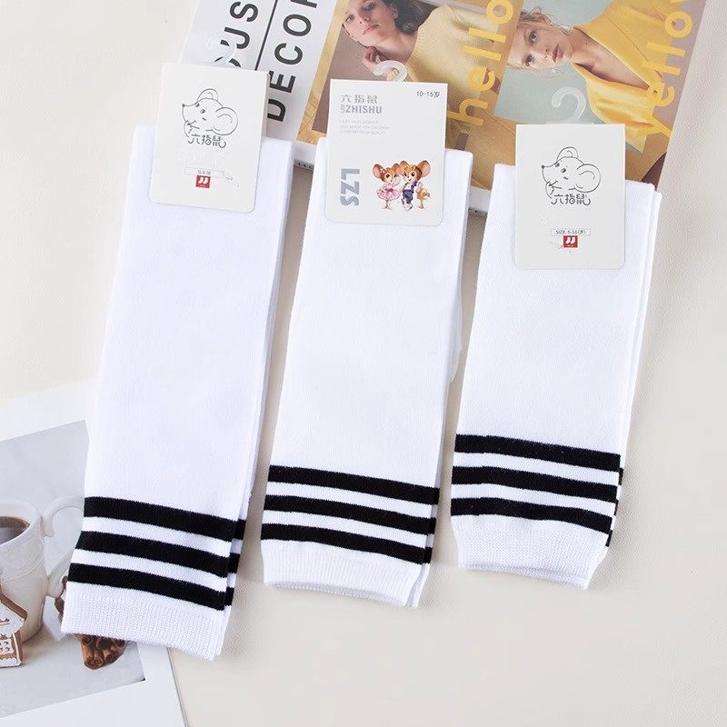 六指鼠儿童袜子纯棉黑白条纹中筒袜小学生过膝长袜男童女童足球袜