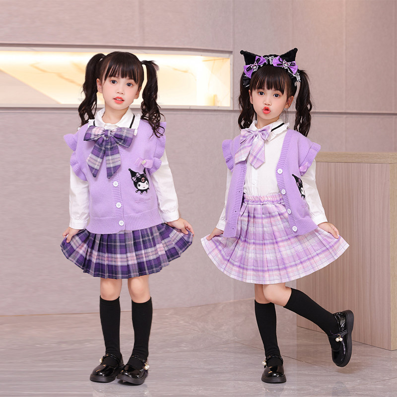 库洛米衣服女童春夏季2026新款儿童女孩洋气春装jk学院风套装裙子