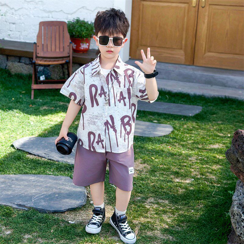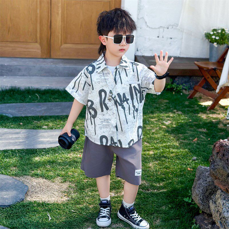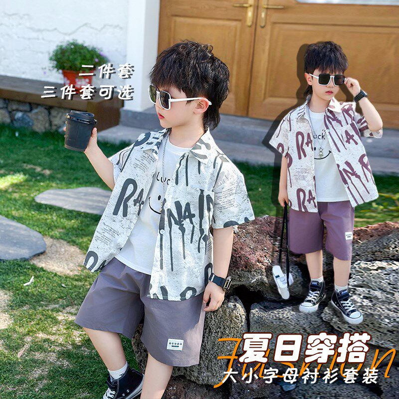男童夏季套装2025新款男孩洋气衬衫短袖儿童装宝宝韩版夏装三件套