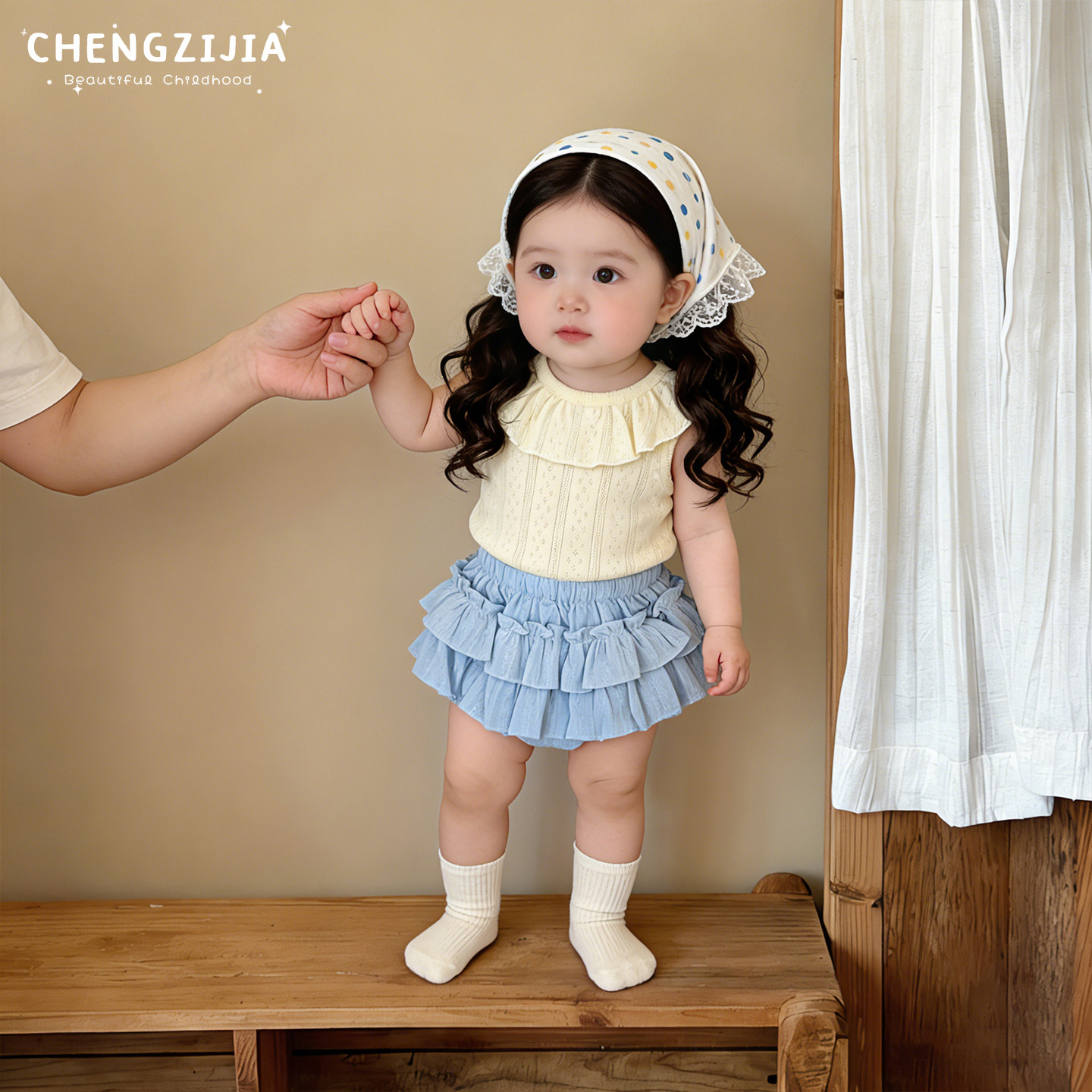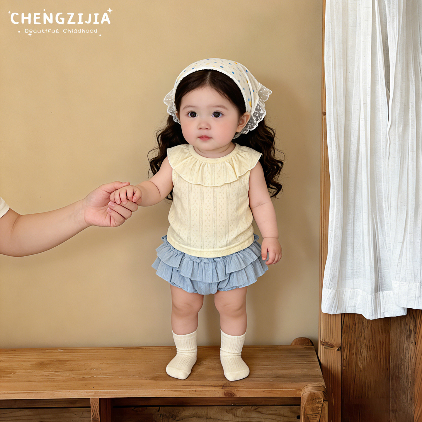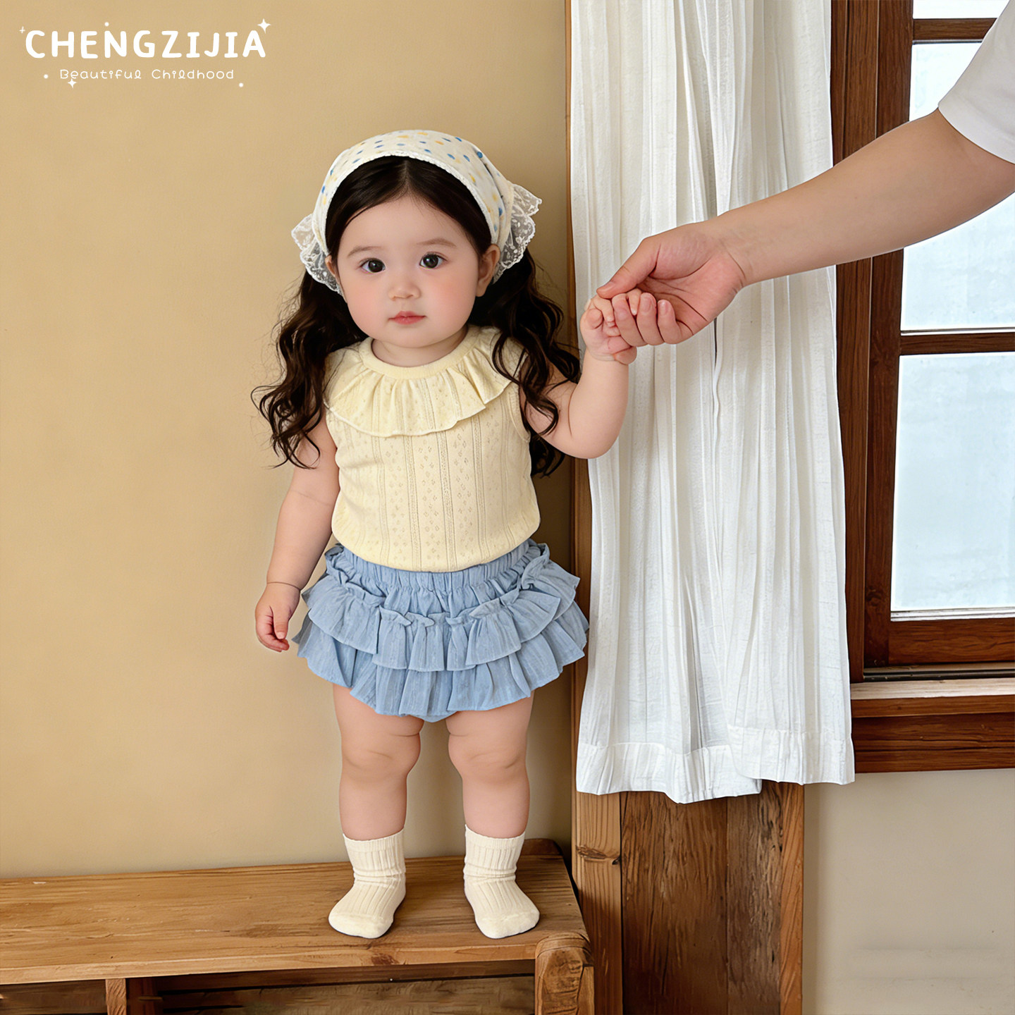 女宝宝夏季甜美背心套装女童韩系花边领薄款上衣婴儿洋气花苞裤子