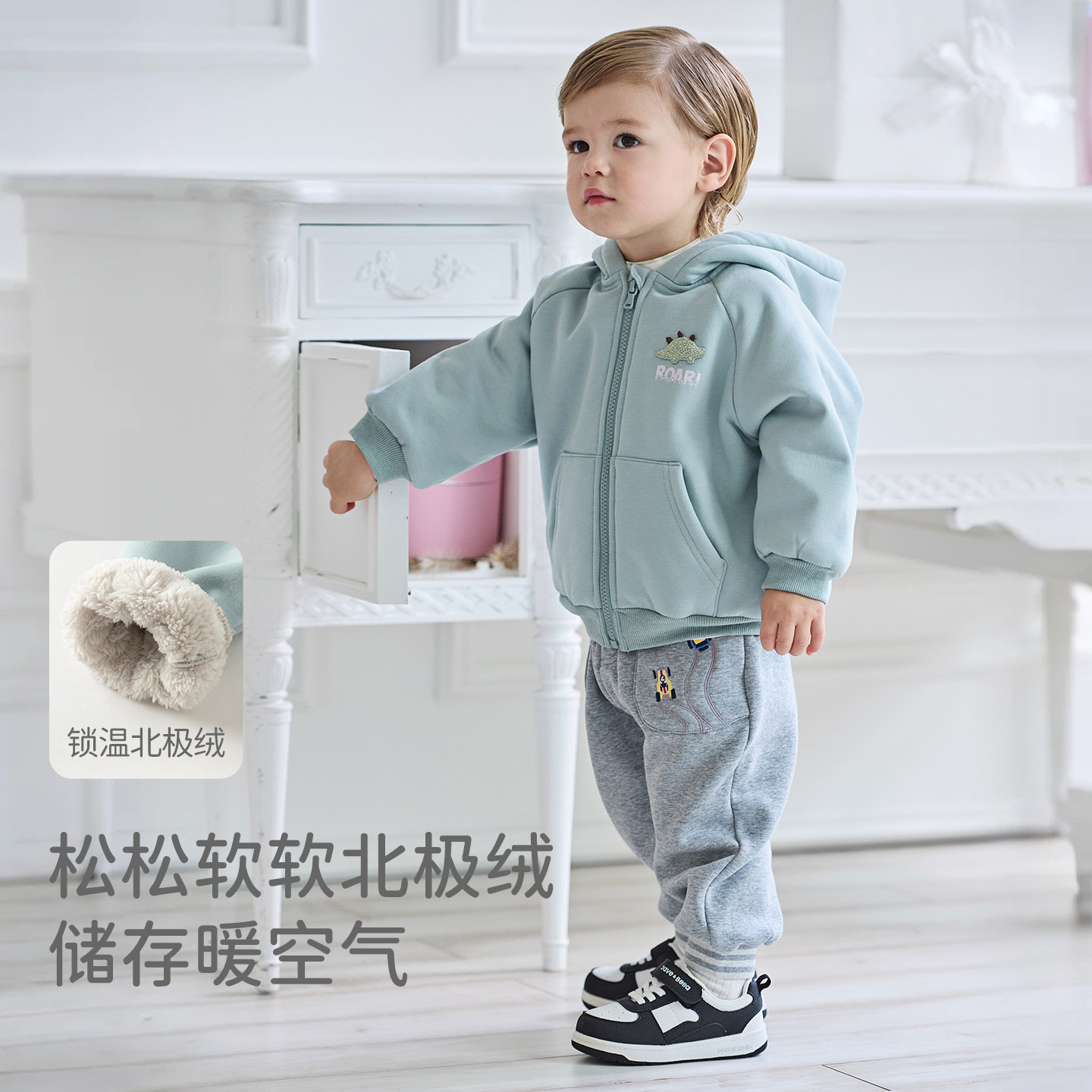 戴维贝拉儿童加绒外套2026春装新男女童加厚卫衣宝宝萌趣衣服A类