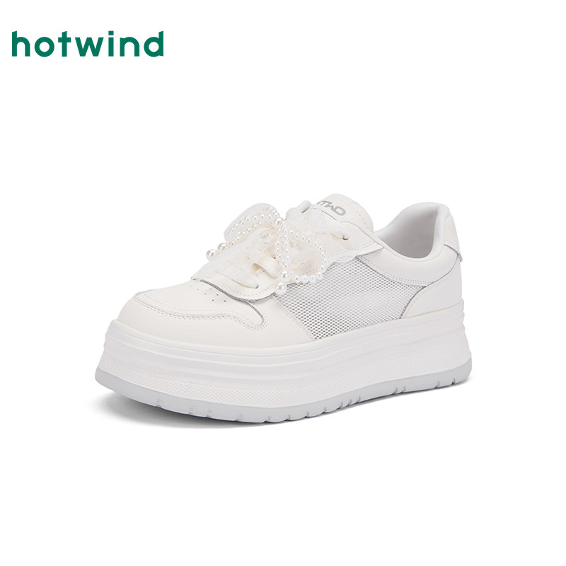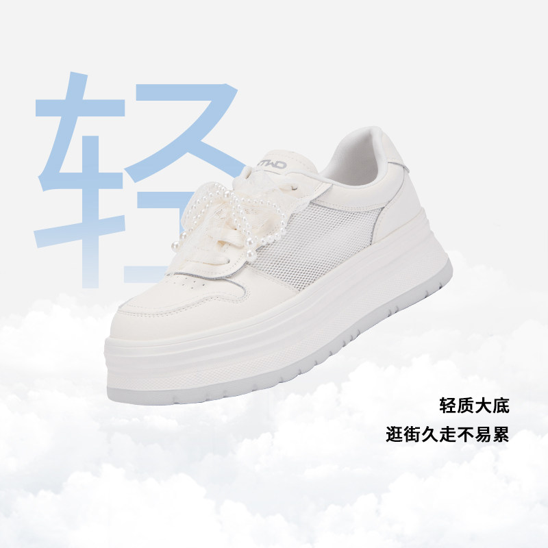 热风网面小白鞋女款2025年冬季新款厚底增高休闲鞋透气百搭女鞋子