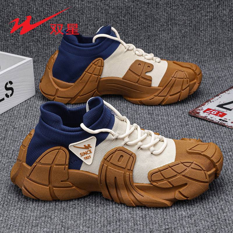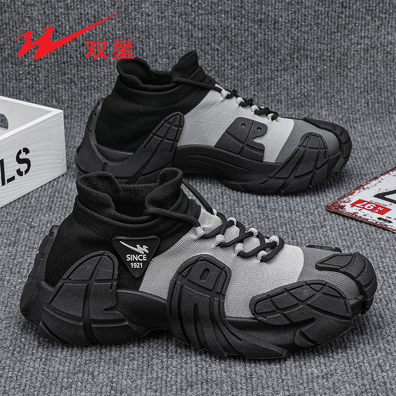 双星鞋子男鞋夏季透气网面飞织袜子鞋户外防滑运动休闲跑步老爹鞋