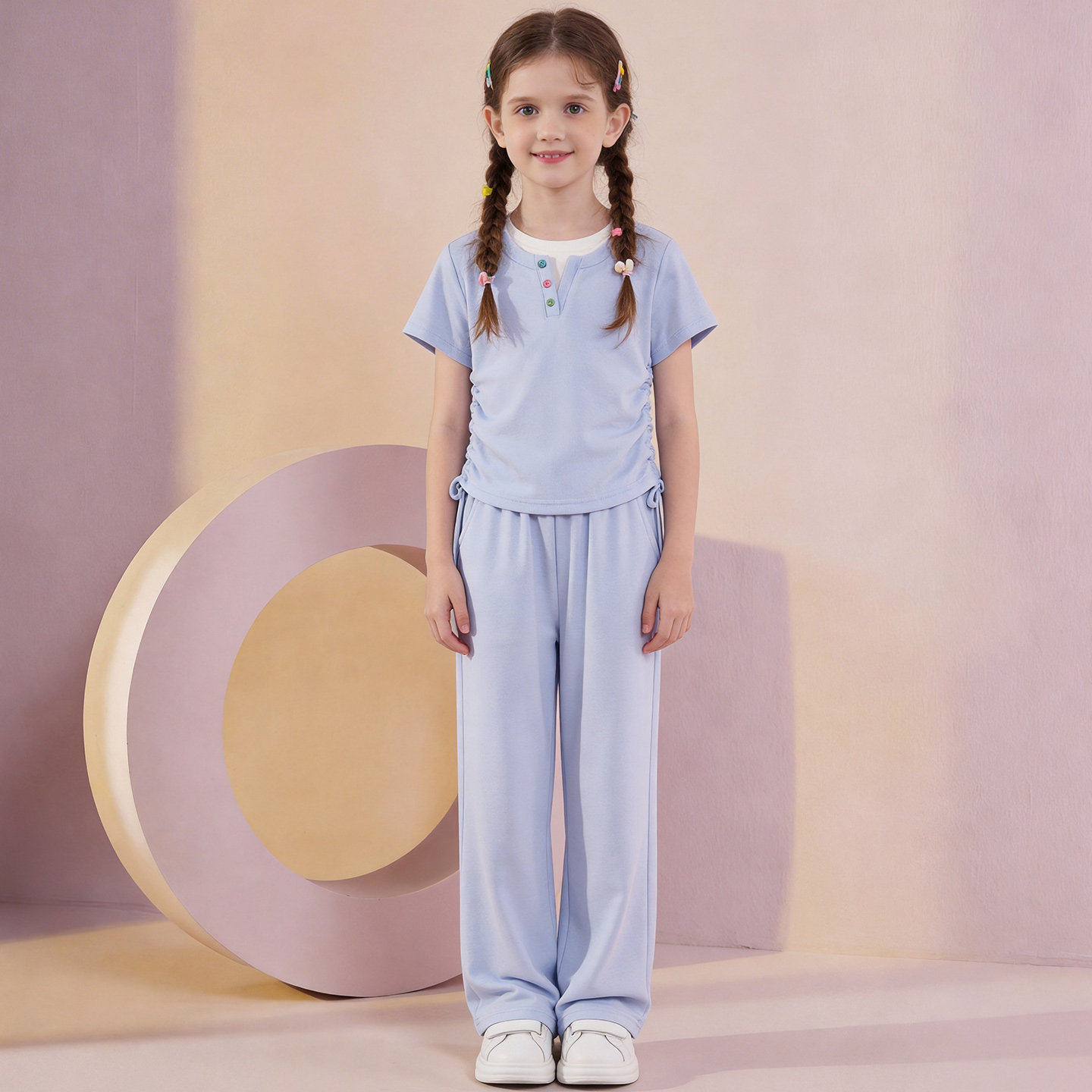 女童夏套装2026新款今年流行爆款女孩夏季休闲运动服儿童短袖长裤