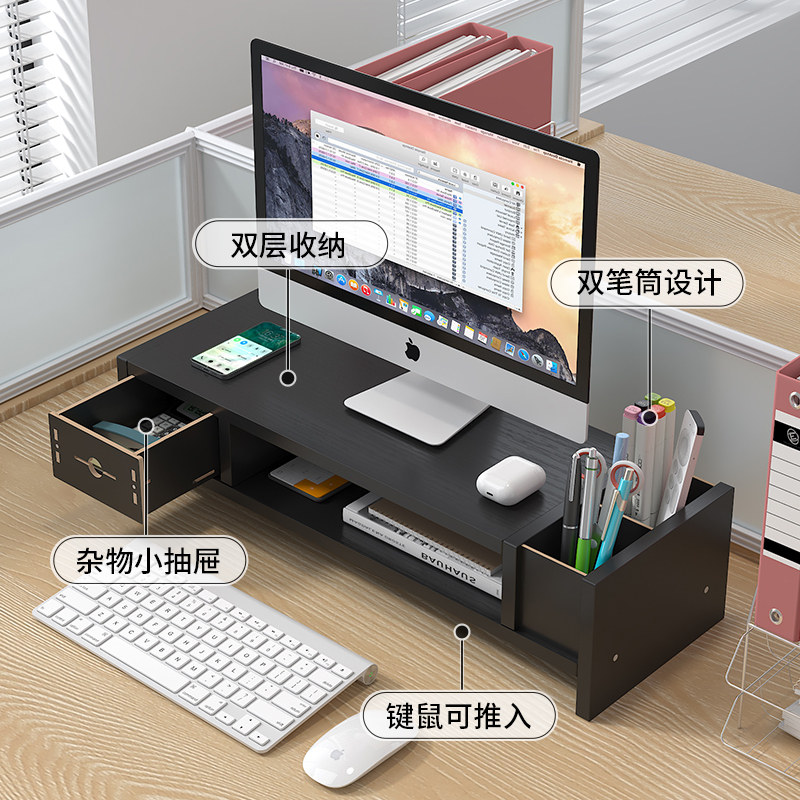 办公室台式电脑增高架桌面显示器屏幕抬高垫高底座黑色收纳置物架