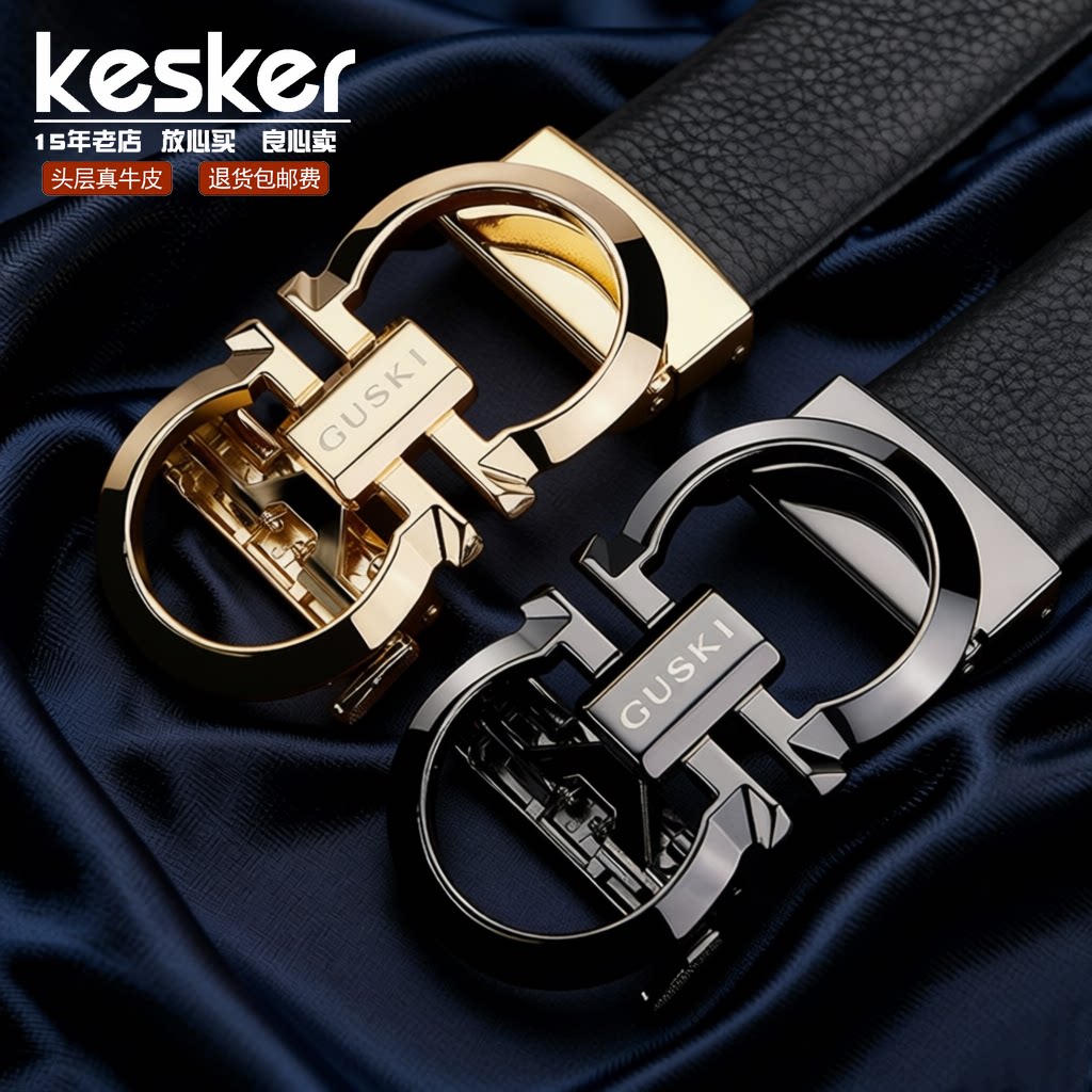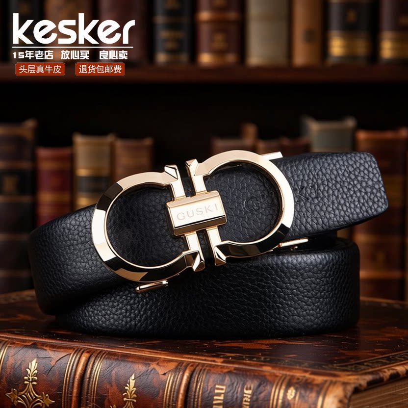 潮牌高级男士真皮腰带头层牛皮商务皮带2026新款黑色自动扣礼盒装
