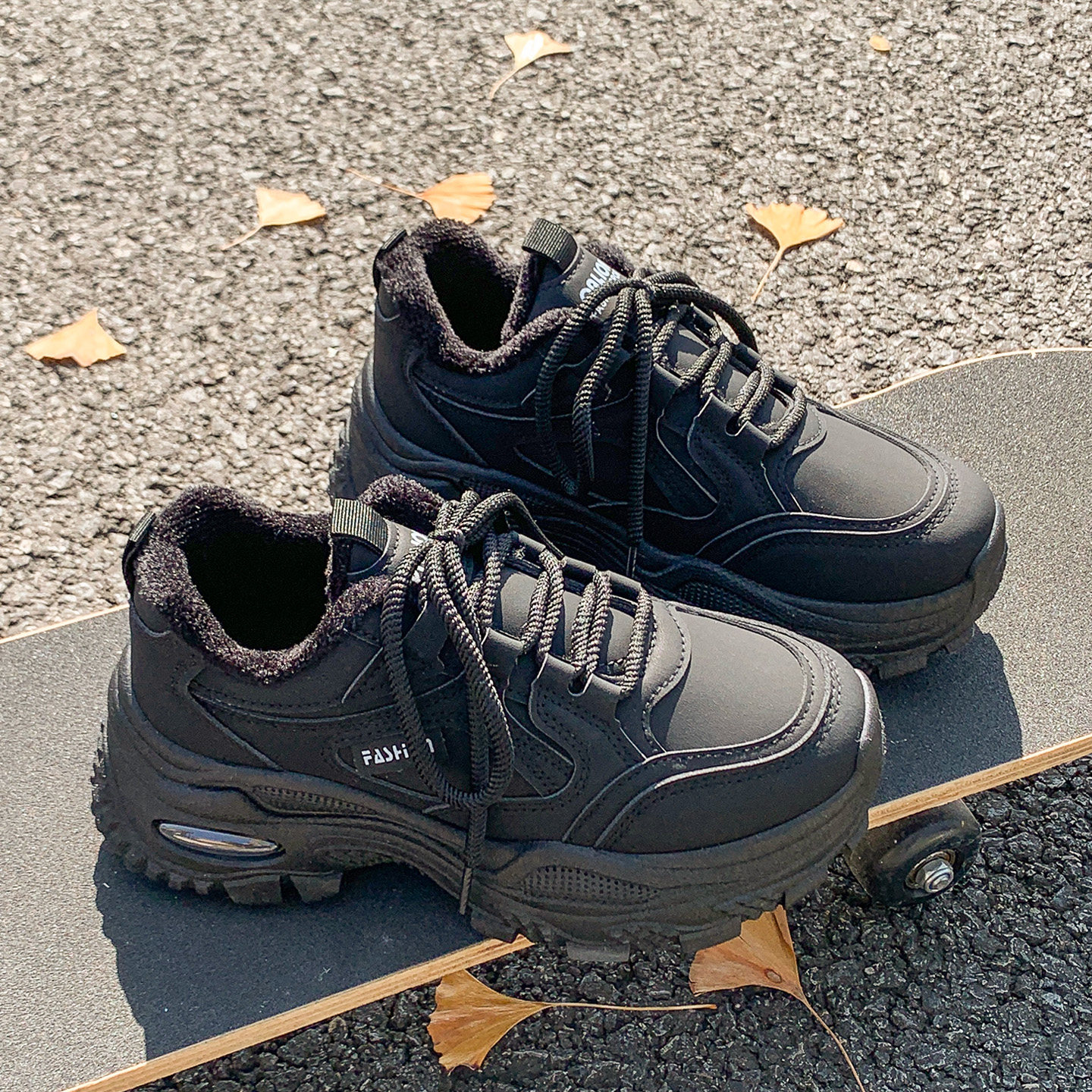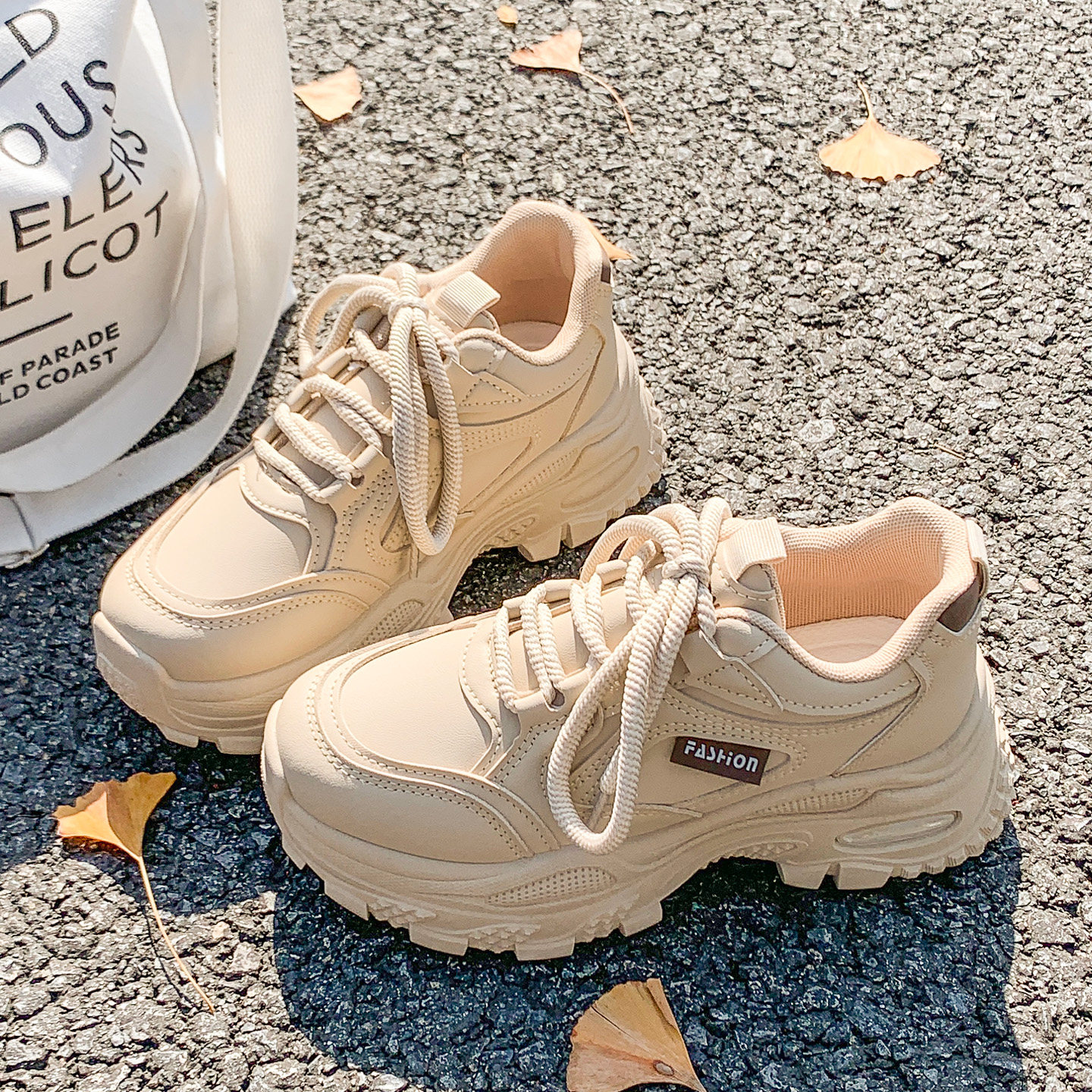 巨好看老爹鞋女款2026新款早春厚底增高显脚小黑色学生休闲运动鞋