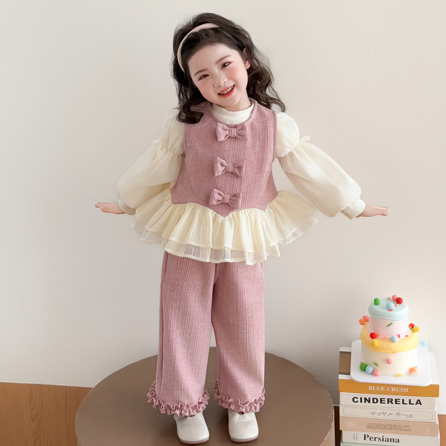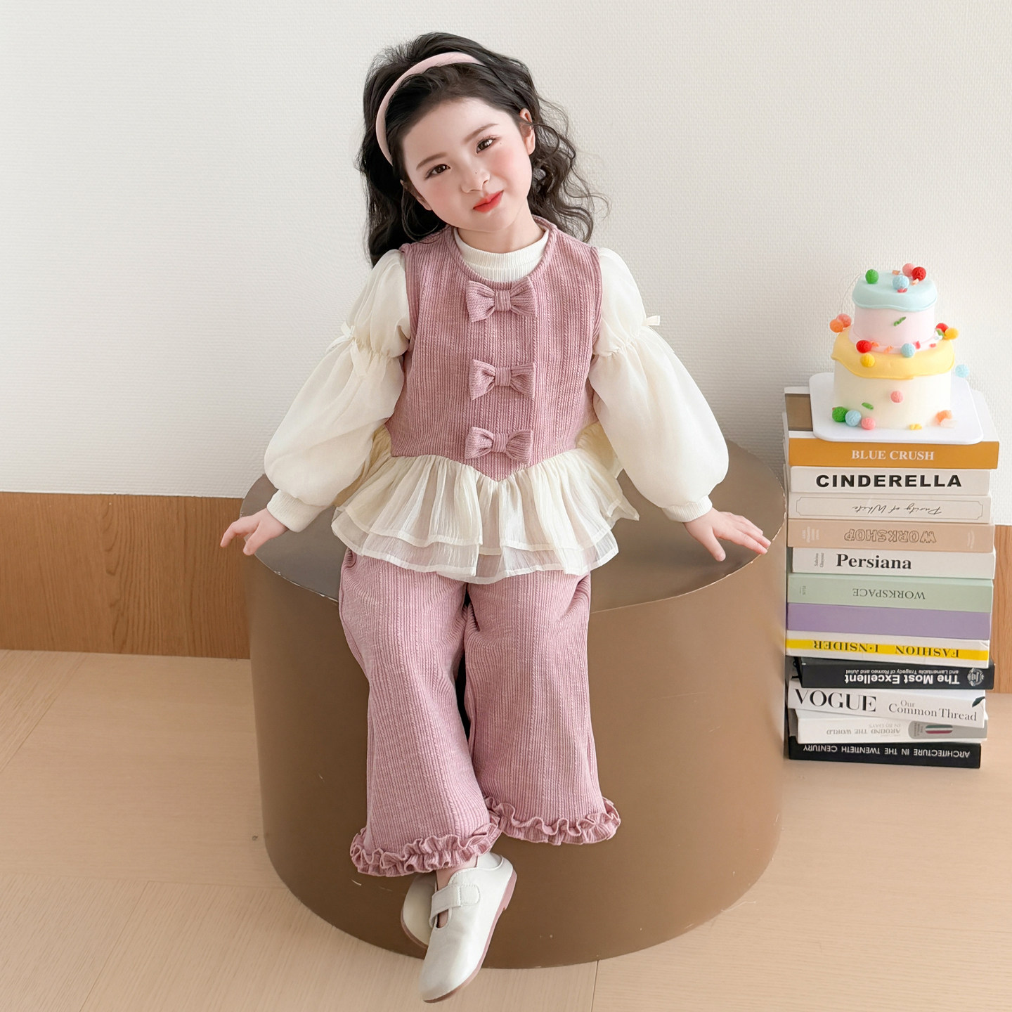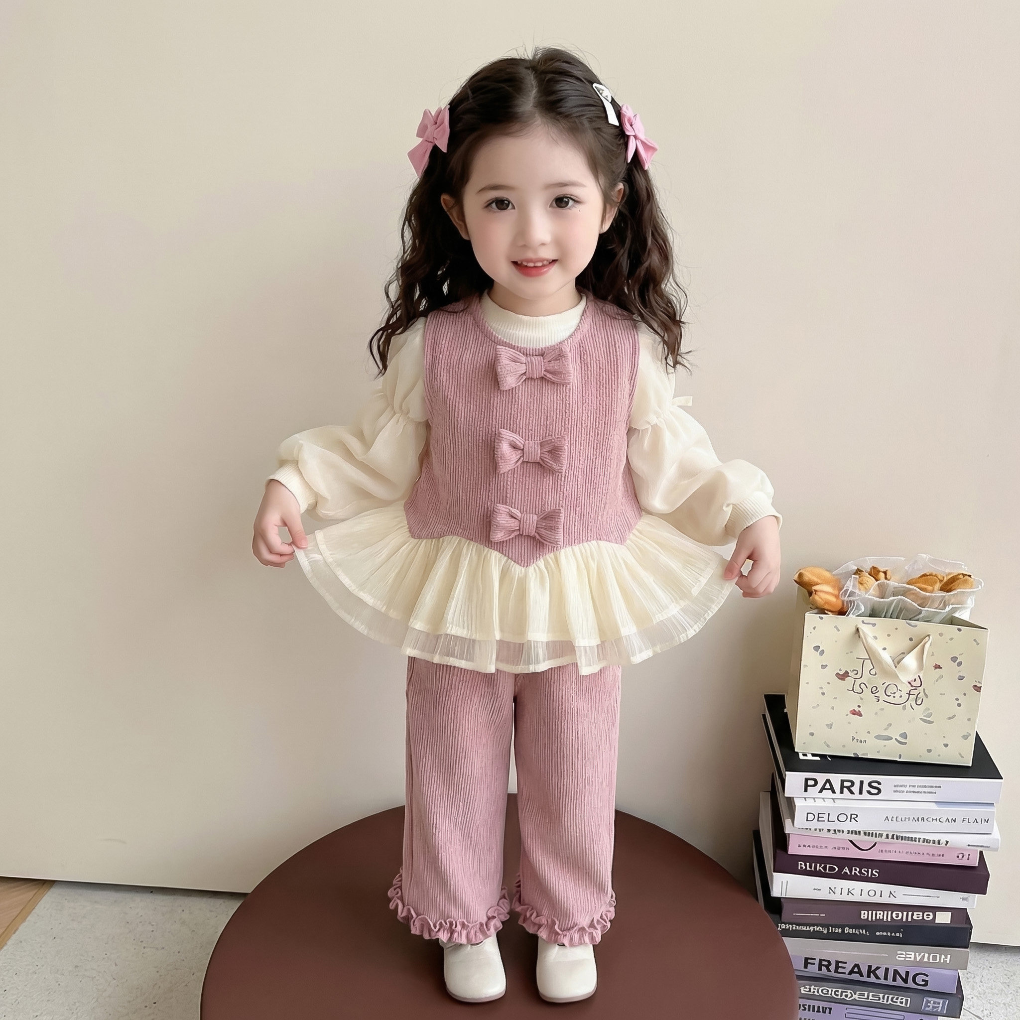 女童春秋小香风蝴蝶结套装2026新款洋气时髦儿童女宝宝早春季春装