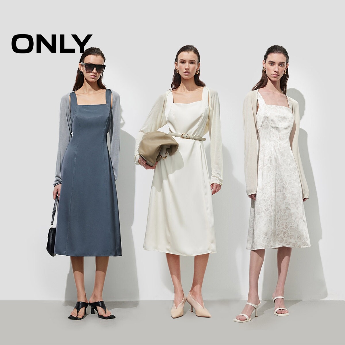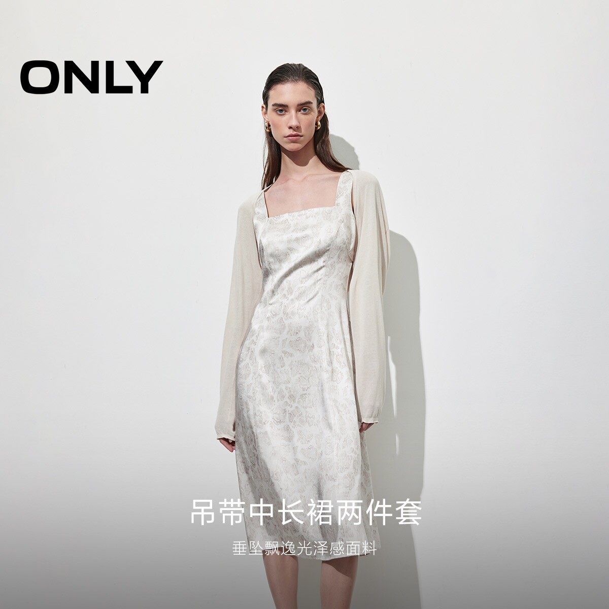【ONLY奥莱】春季新款修身长袖薄开衫吊带收腰中长裙套装连衣裙女