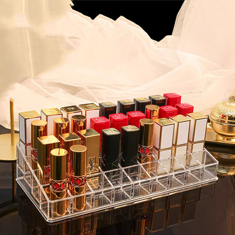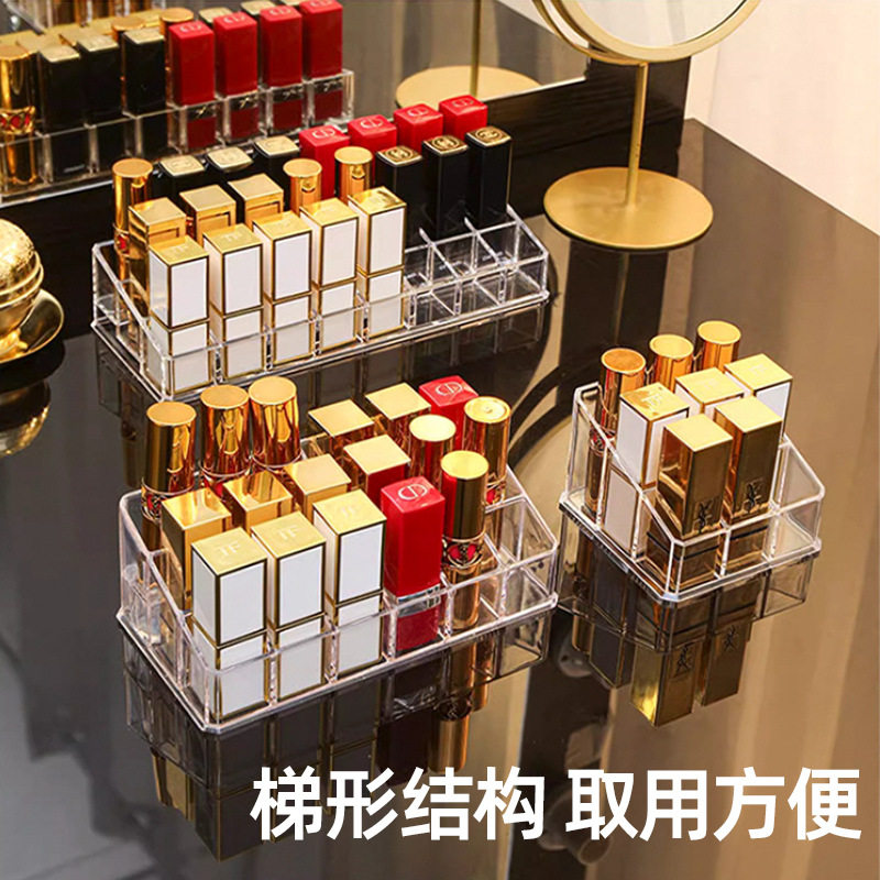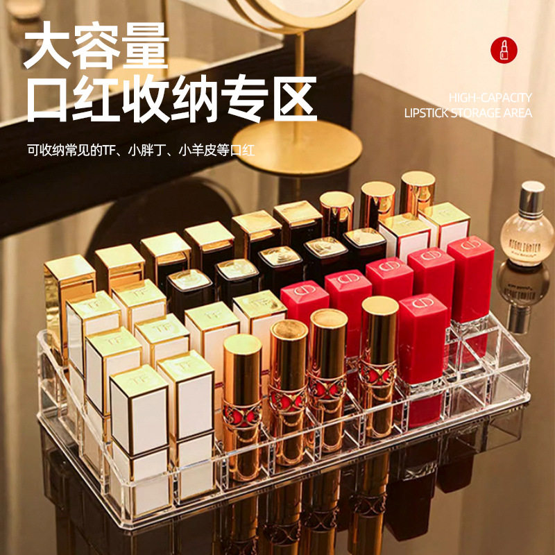 网红口红收纳盒带盖防尘桌面唇釉不倒多格化妆品口红架整理盒透明