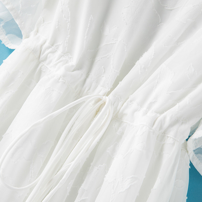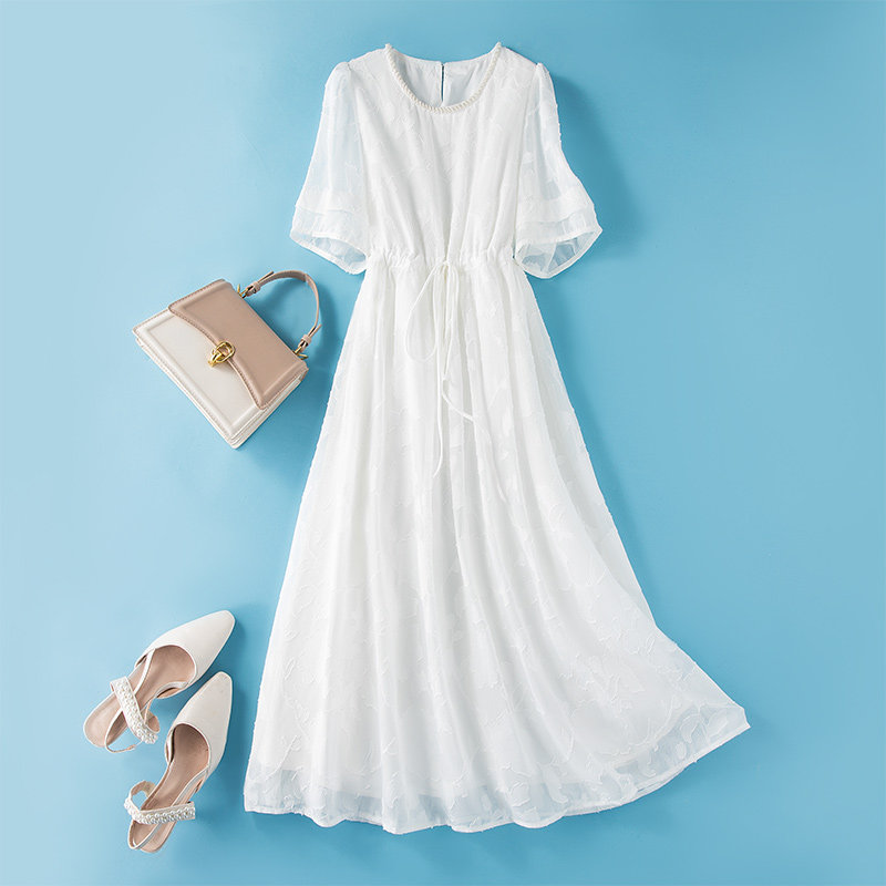 大码白色连衣裙女夏2024新款胖mm仙气公主短袖提花中长款初恋裙子