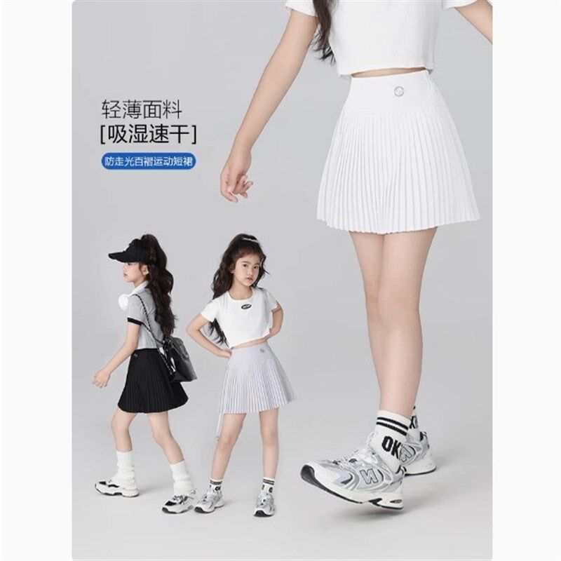 女童半身裙运动速干裙子夏季羽毛球网球裙儿童百褶T裙夏装冰丝短
