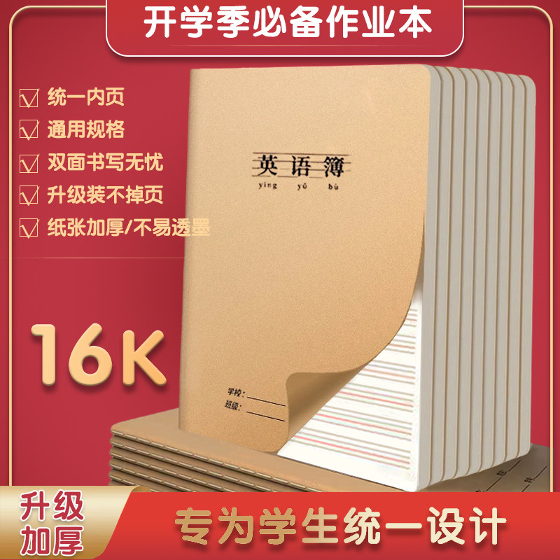 牛皮纸英语本16K大小号初中高中外语本32K小学生B5四线三格单词簿