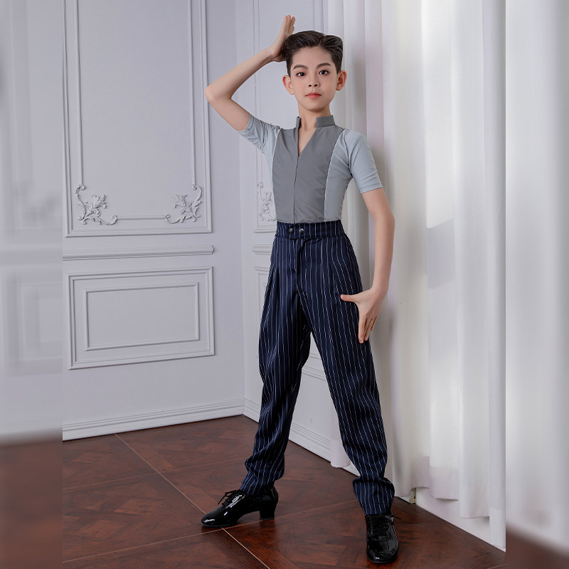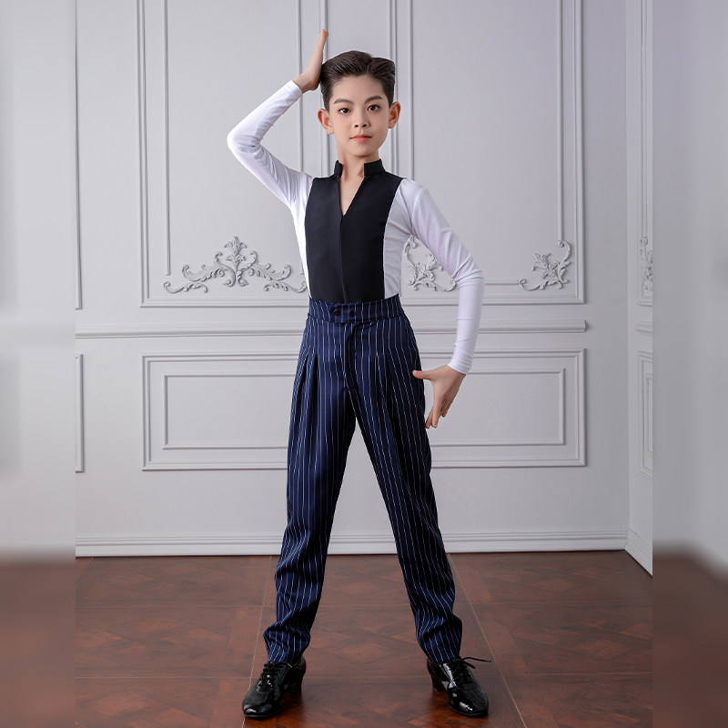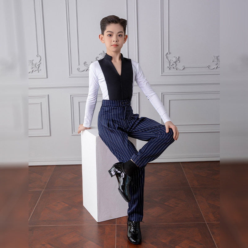 男童拉丁舞服儿童男孩长袖上衣练功服裤子高级男童专业比赛服黑池