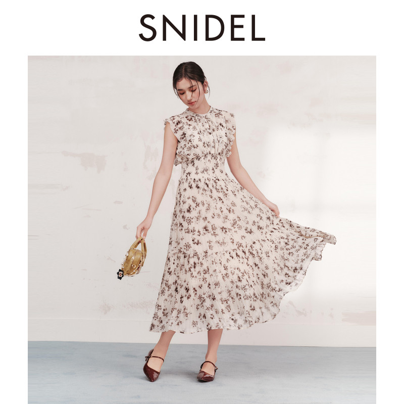 SNIDEL2026春夏新品优雅荷叶边小飞袖碎花茶歇连衣裙SWFO261069