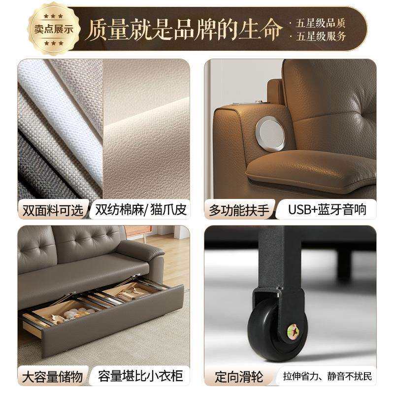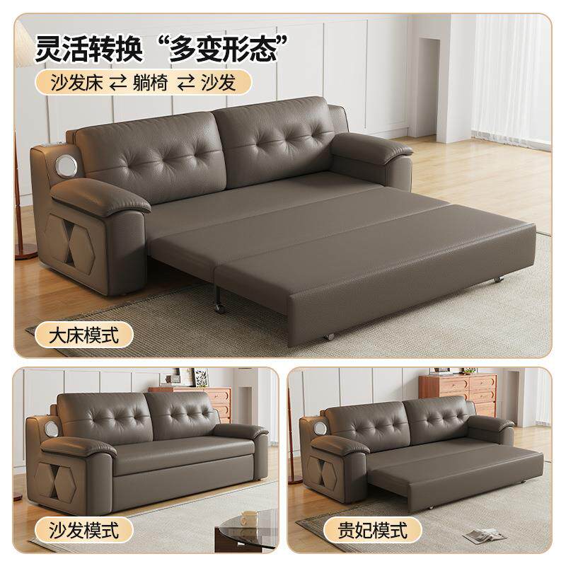 沙发床坐卧一体两用纳帕真皮客厅小户型奶油风可折叠伸缩2026新款