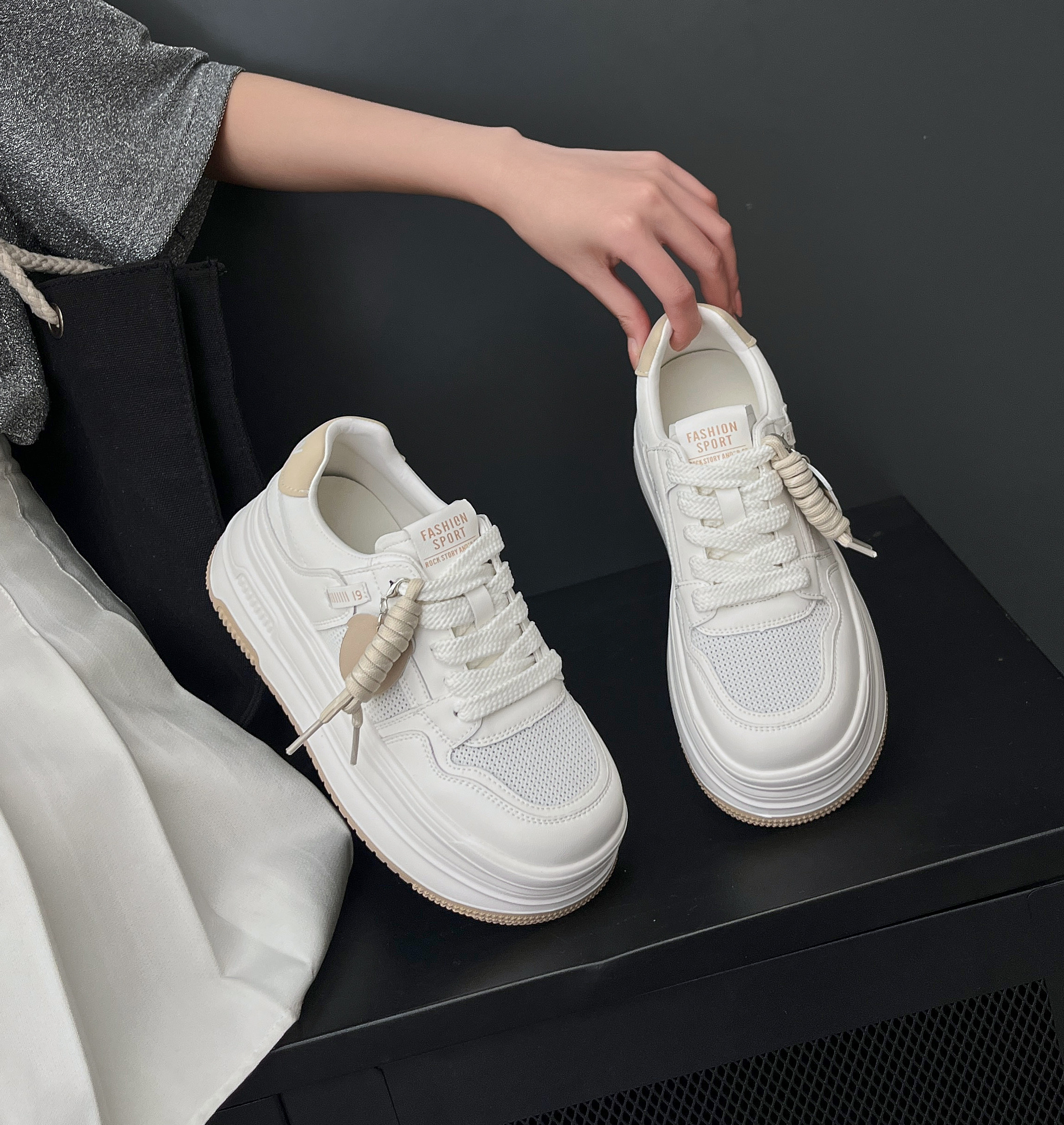 倩儿雅正品2026新款春夏厚底增高老爹鞋女百搭休闲板鞋透气单网鞋