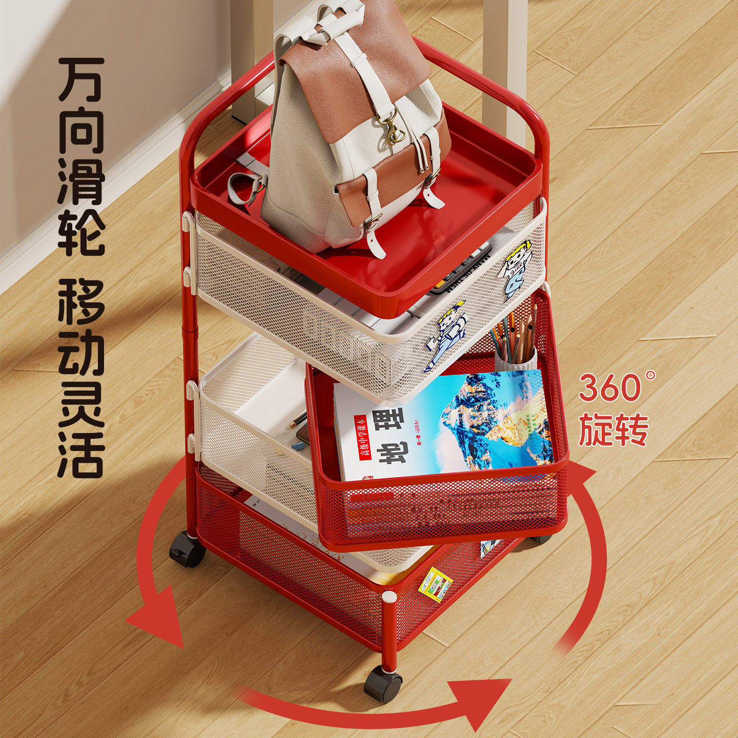 多巴胺小推车零食可旋转置物架移动落地家用客厅厨房多层收纳架子