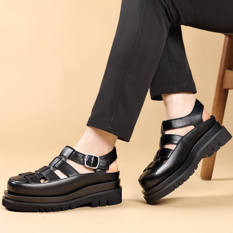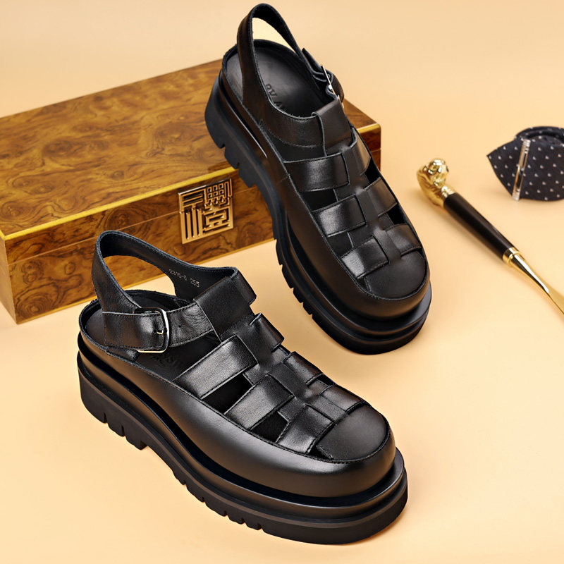 偷偷高正品夏季男士厚底8cm男鞋洞洞鞋凉鞋沙滩鞋内增高真皮10cm