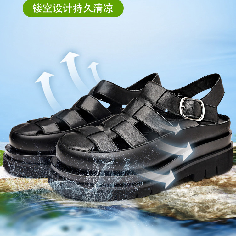 正品夏季男士厚底8cm男鞋洞洞鞋凉鞋沙滩鞋内增高真皮10cm