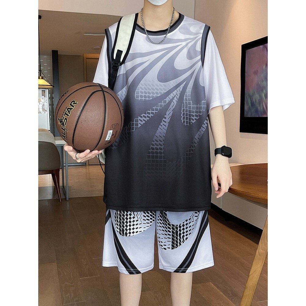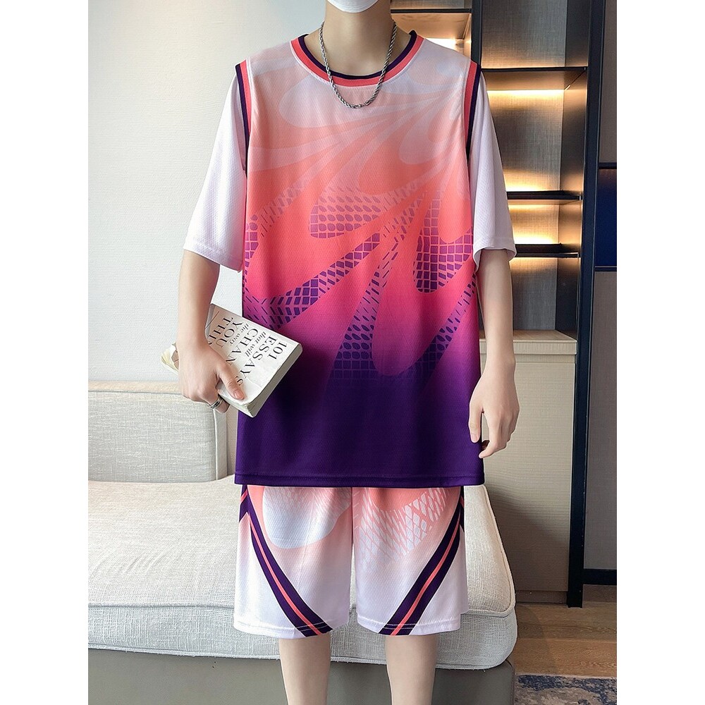 短袖篮球服套装男球衣定制速干冰丝T恤青少年运动宽松短裤假两件