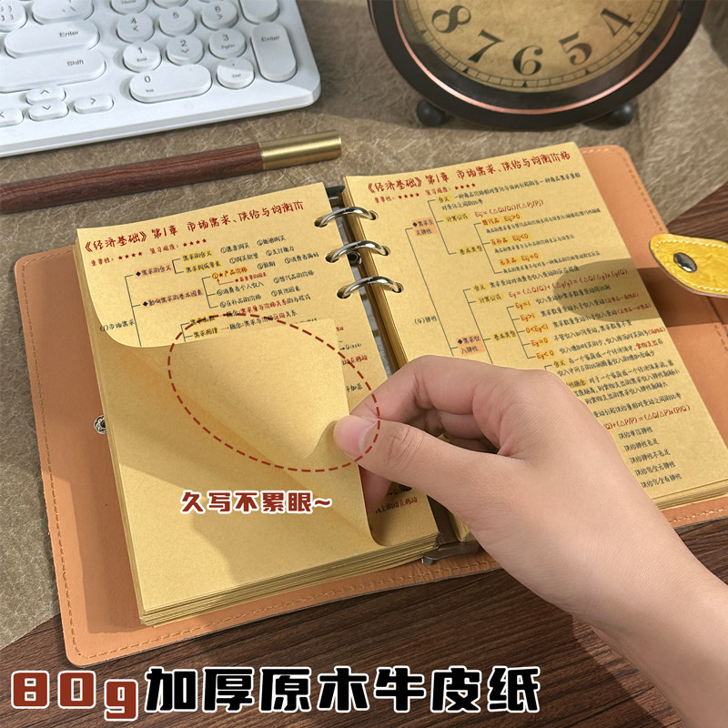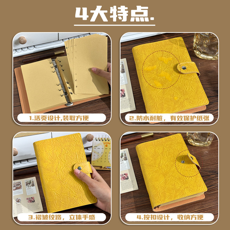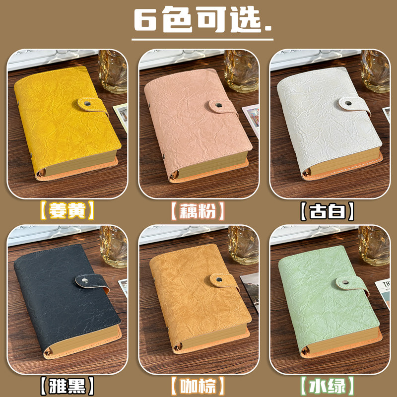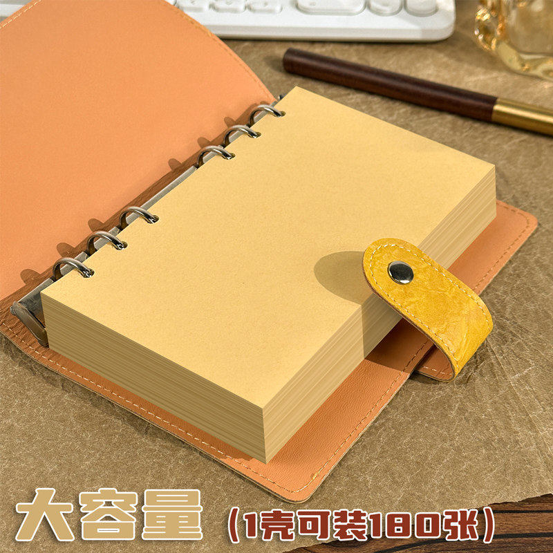 a6牛皮纸活页本a5复古软皮记事本高颜值简约空白手账本学生横线日记本便携活页笔记本本子按扣防水外壳记录本