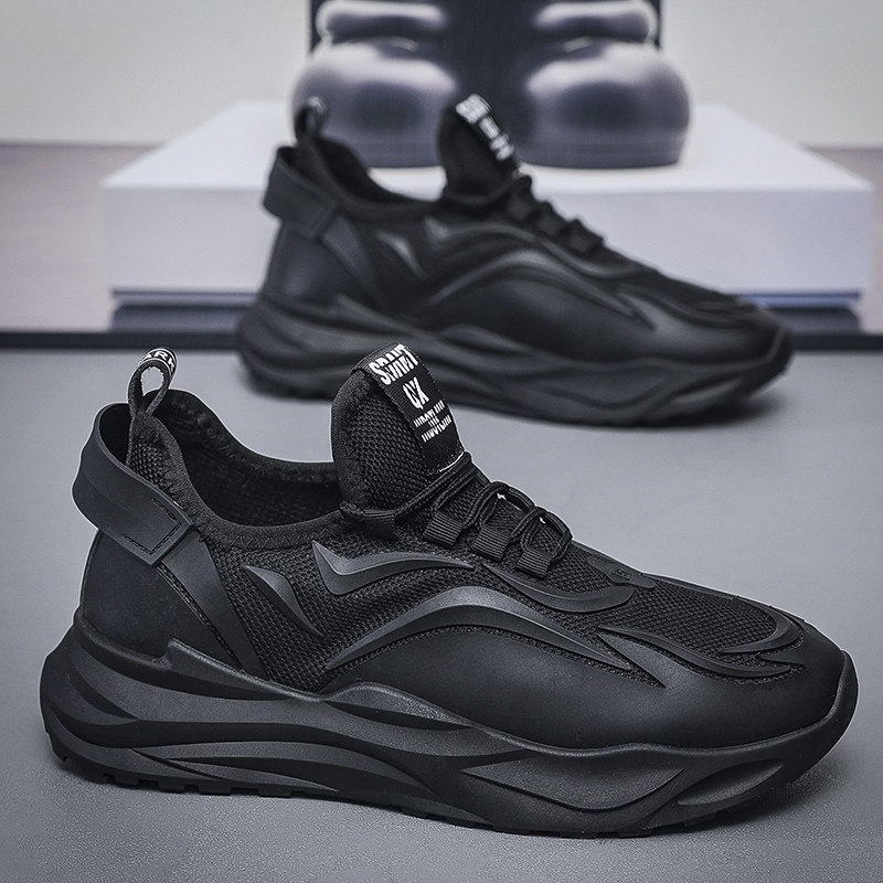 黑色男鞋夏季透气男士工作劳保鞋厚底老爹鞋男款网面休闲运动网鞋