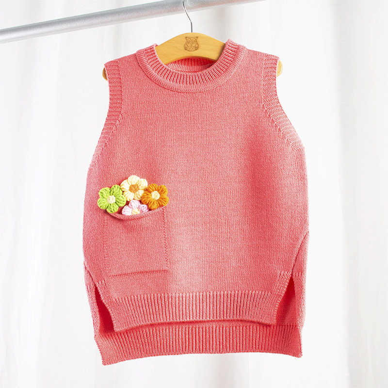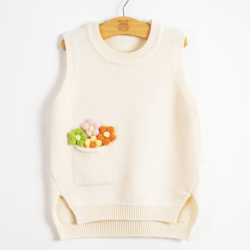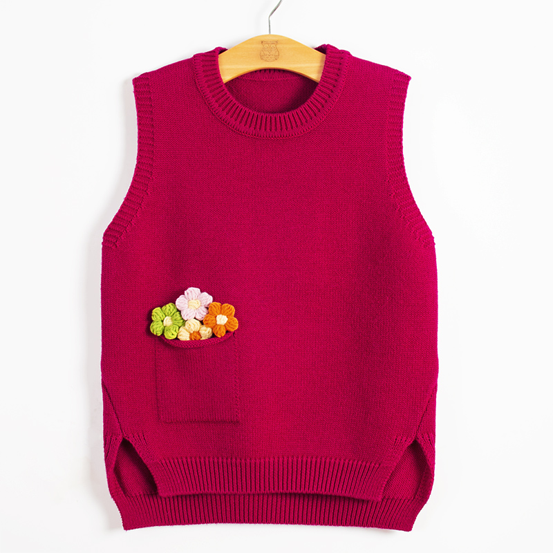 女童背心春秋新款儿童套头中大童小童羊毛毛衣针织衫马甲坎肩花朵