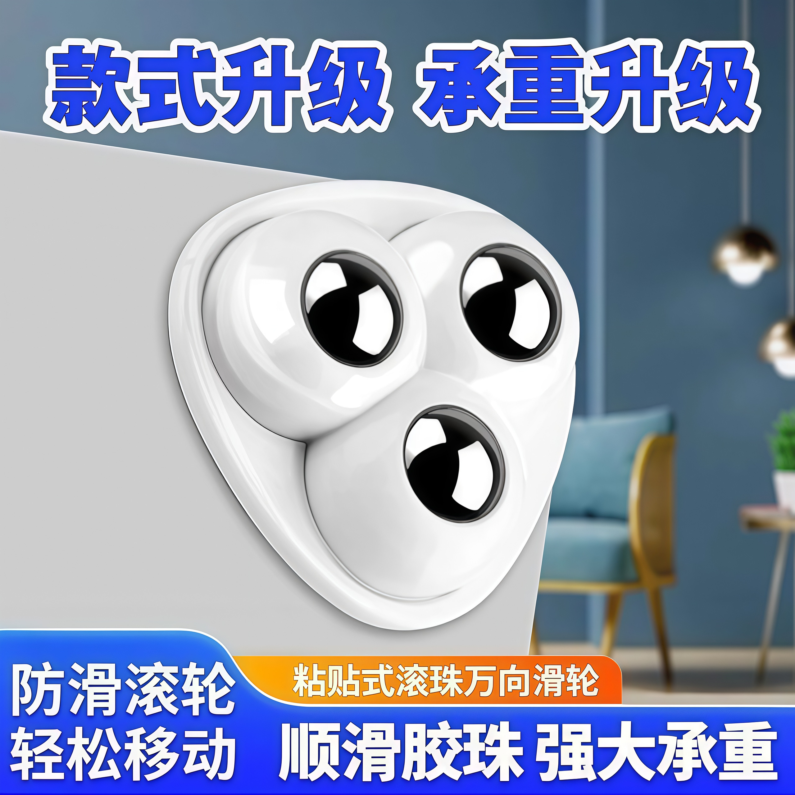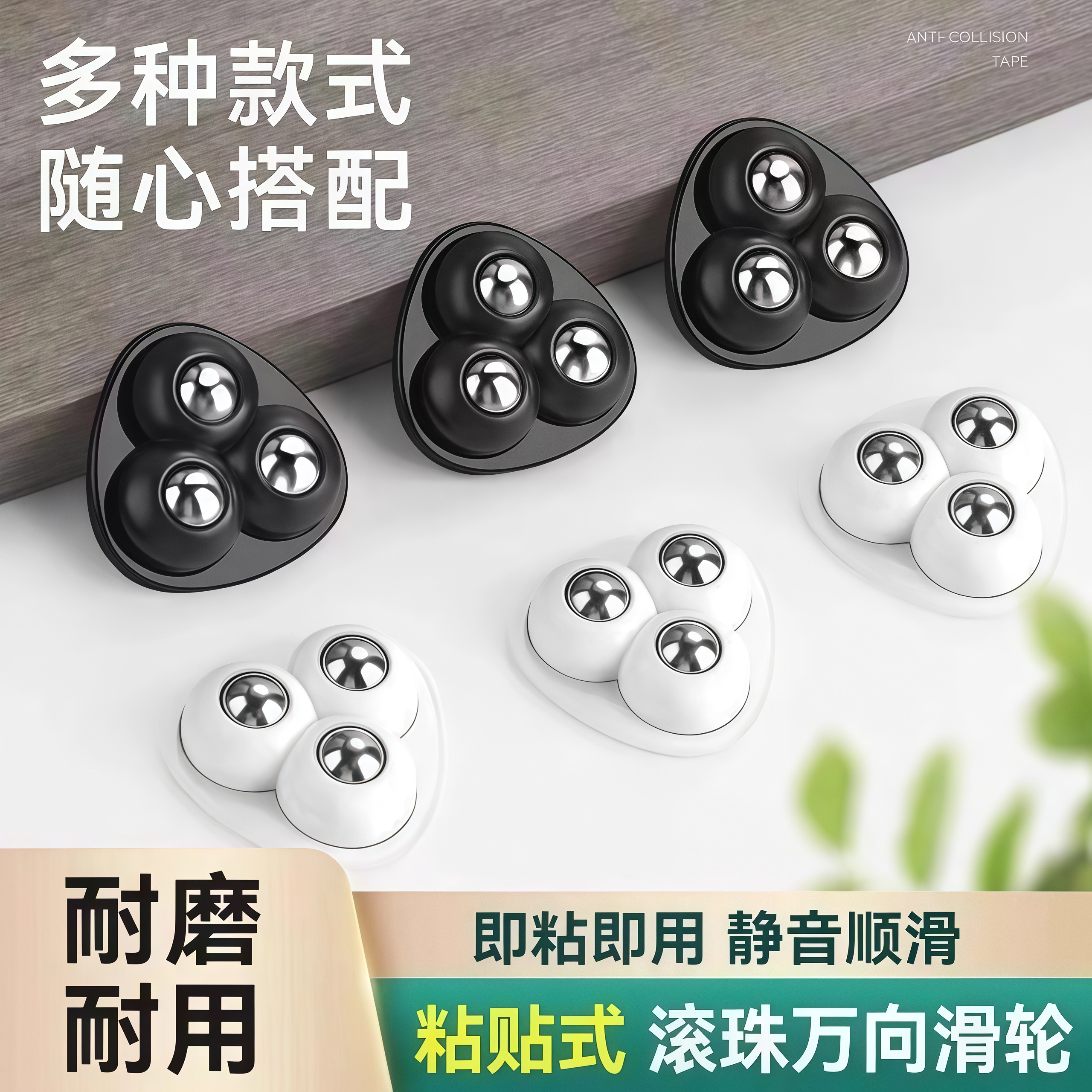 万向轮家具底部免打孔粘贴式滚珠滑轮家用五金承重通用脚轮可移动