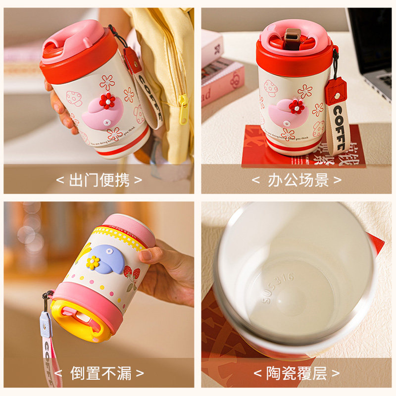 摩登主妇保温杯吸管杯小巧便携水杯女生高颜值2026新款杯子咖啡杯