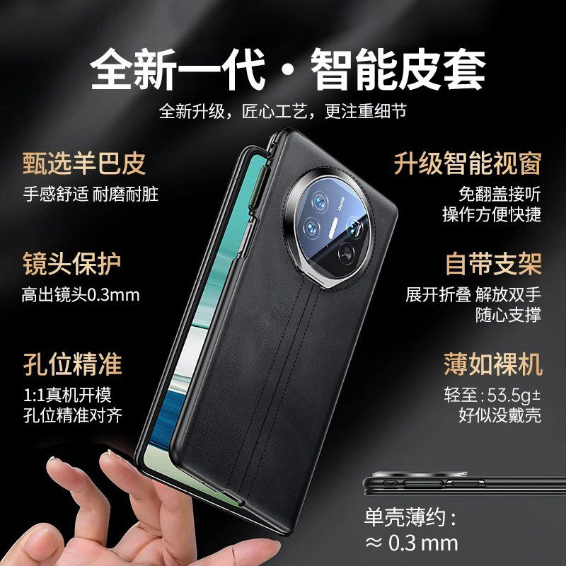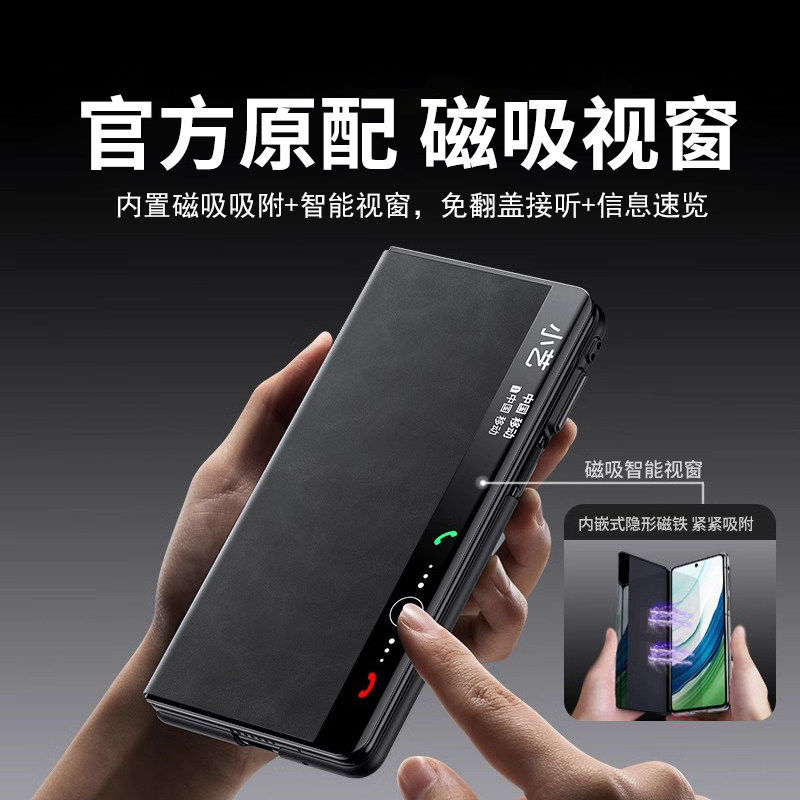 适用华为matex6手机壳新款羊巴皮matex5折叠屏保护套翻盖磁吸x3典藏版全包防摔x6镜头支架真皮手感商务超薄外