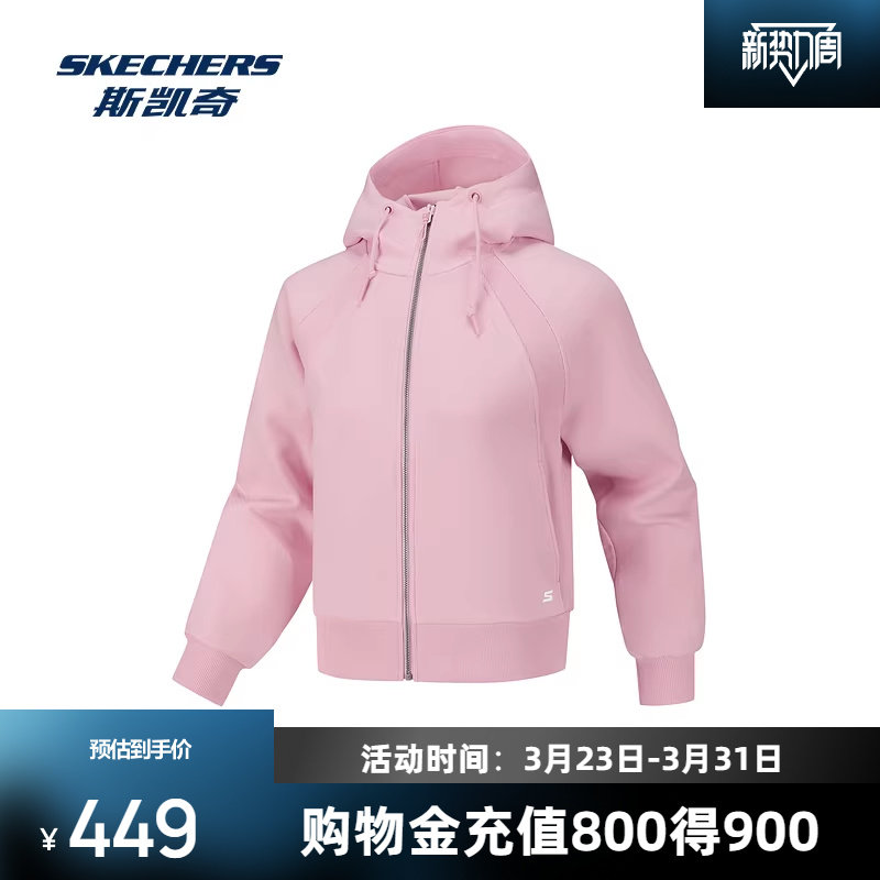 斯凯奇女款外套2026早春新款舒适贴身显瘦运动风连帽针织外套上衣
