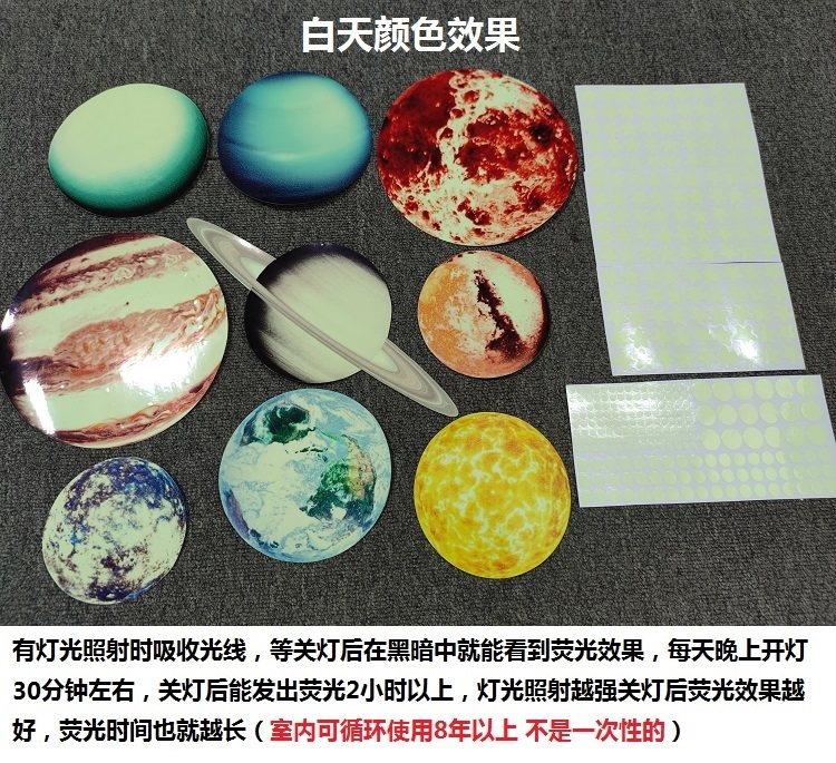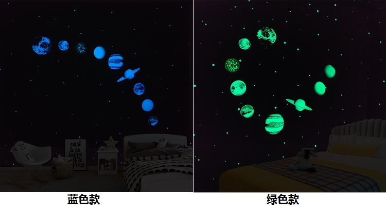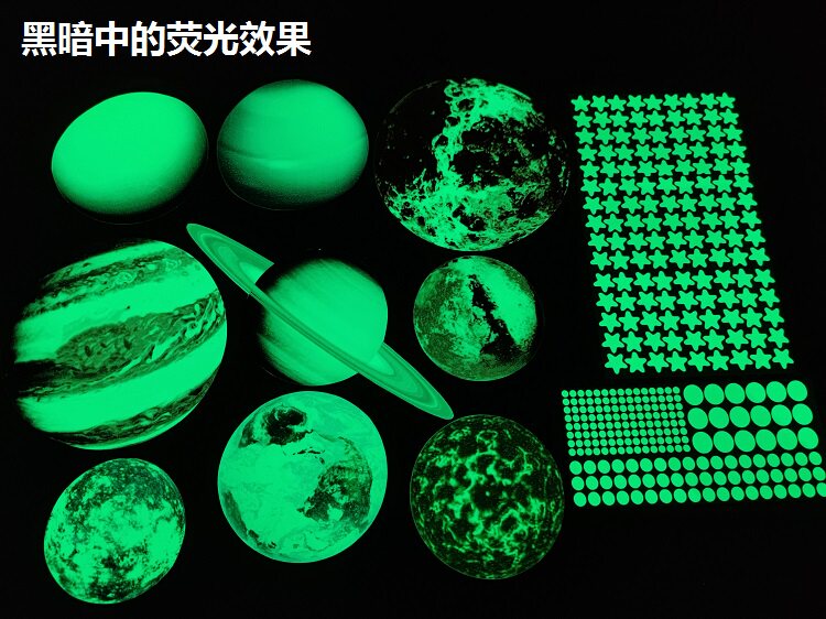 夜光宇宙太空太阳系九大行星银河系装饰贴画荧光星球月亮墙贴纸