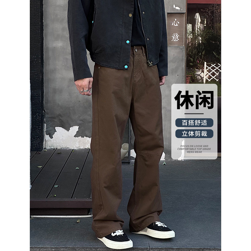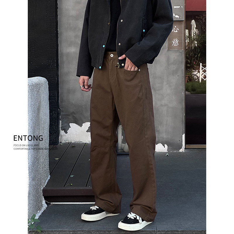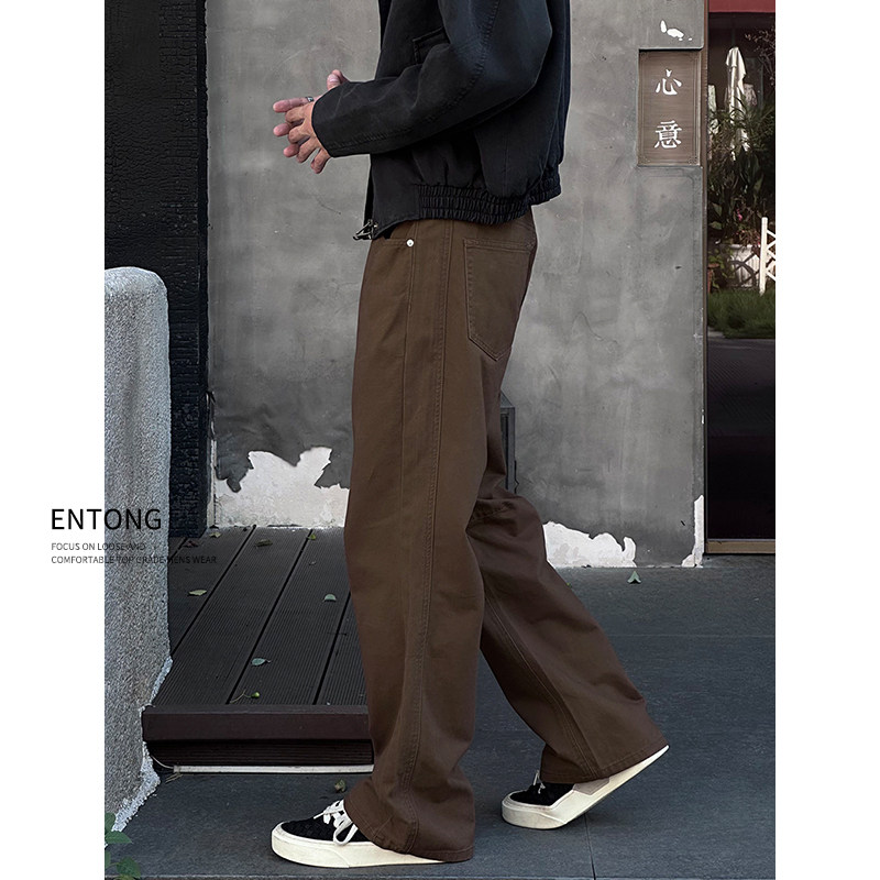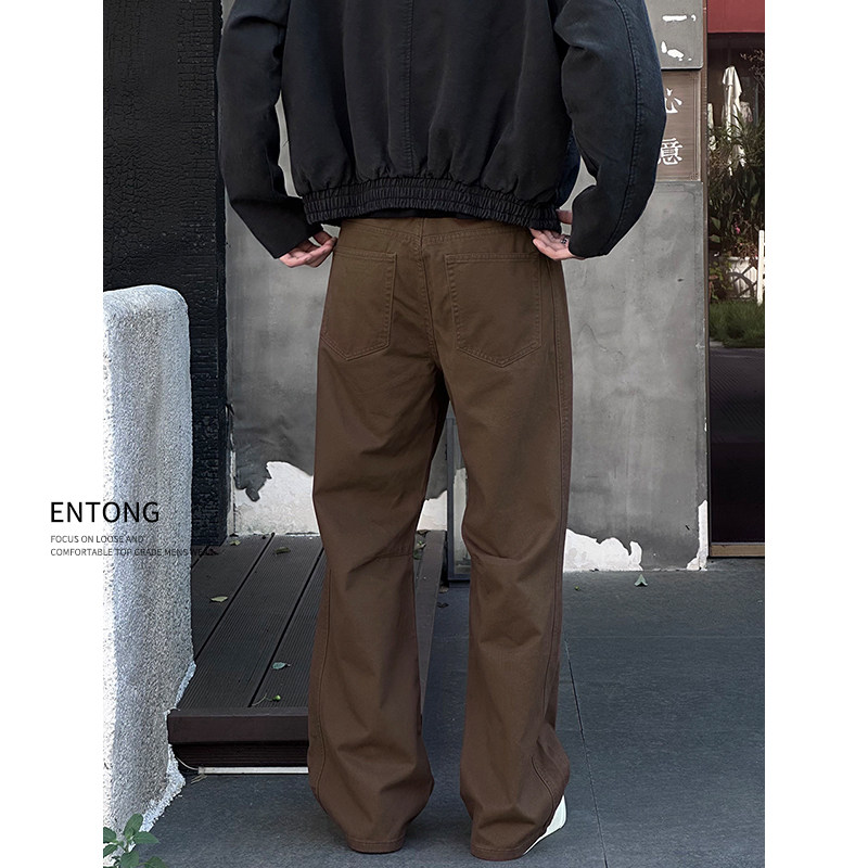 Entong潮牌复古美拉德水洗牛仔裤男款微喇裤休闲百搭宽松大码裤子