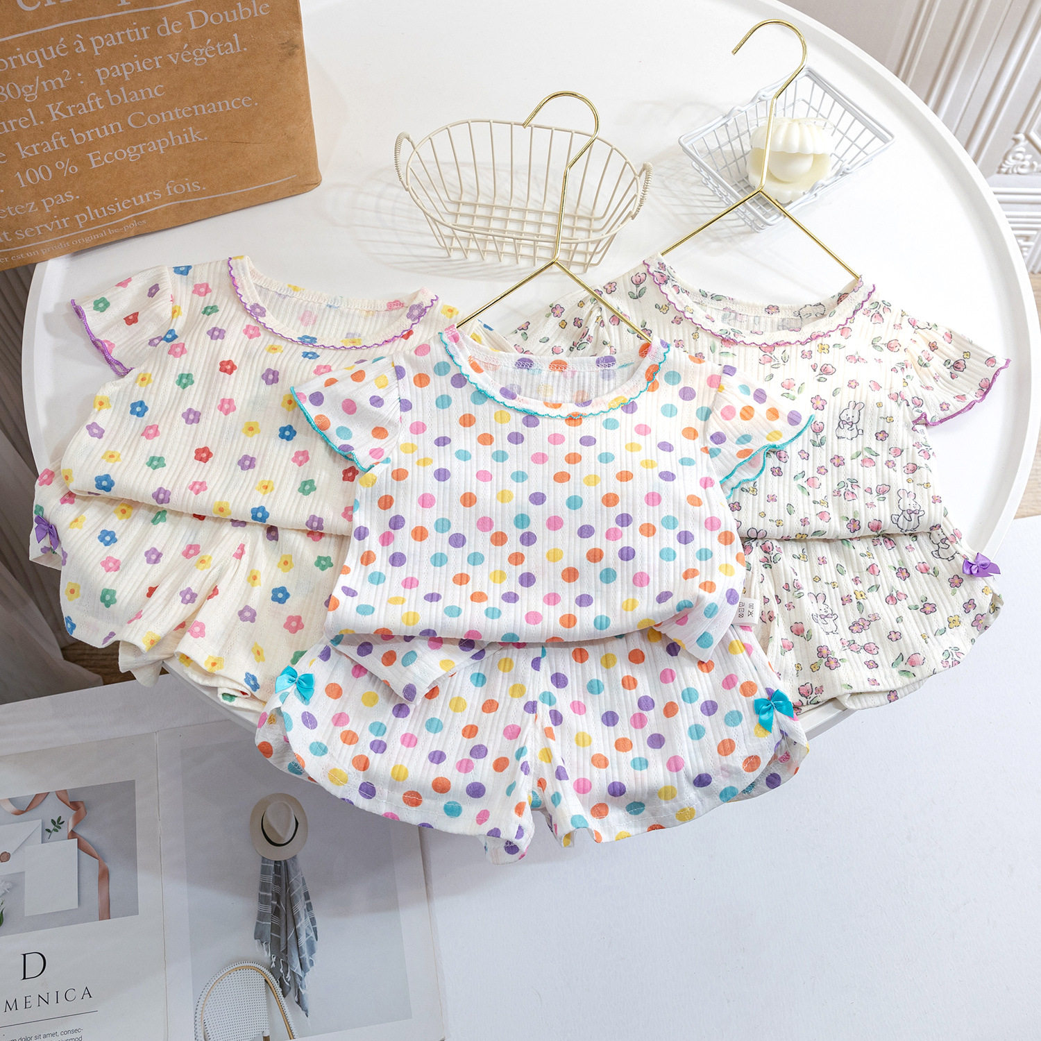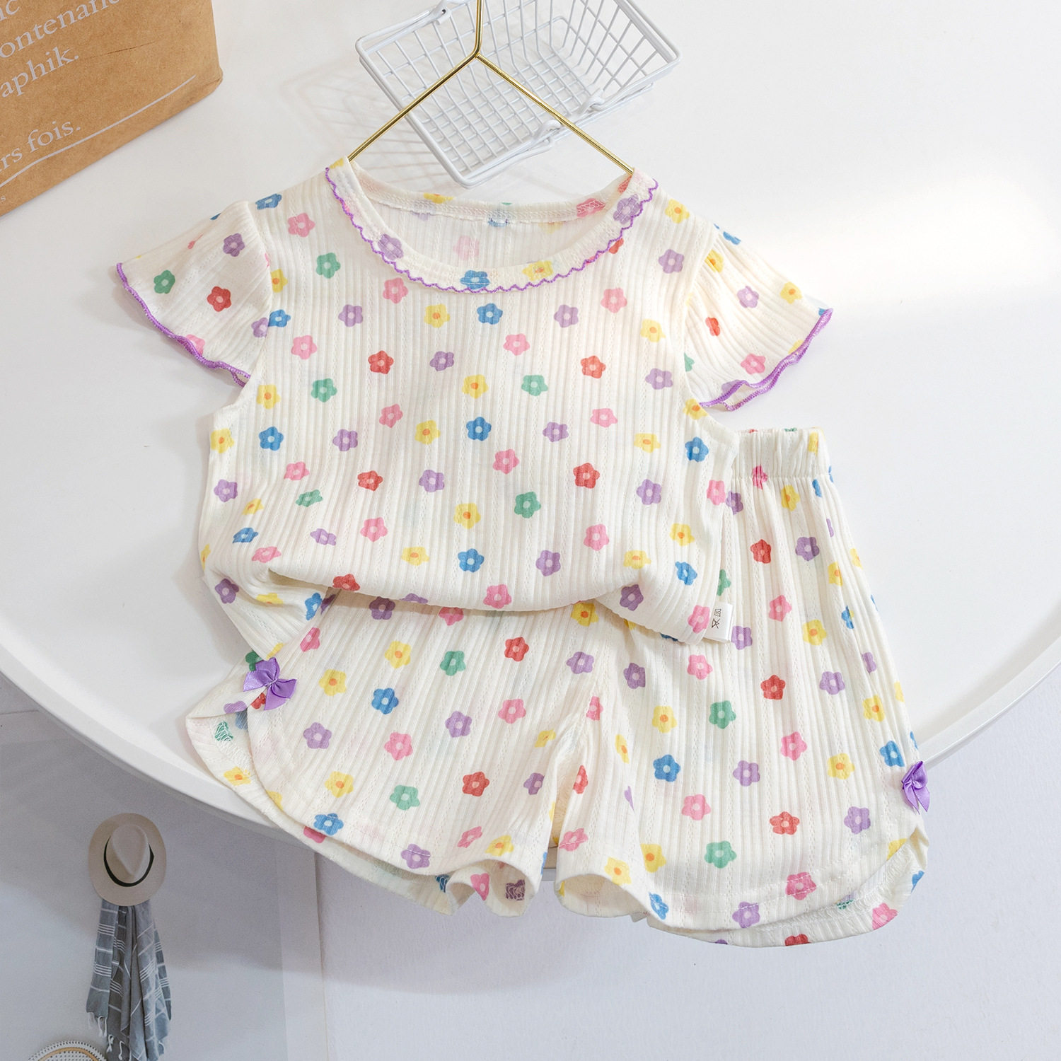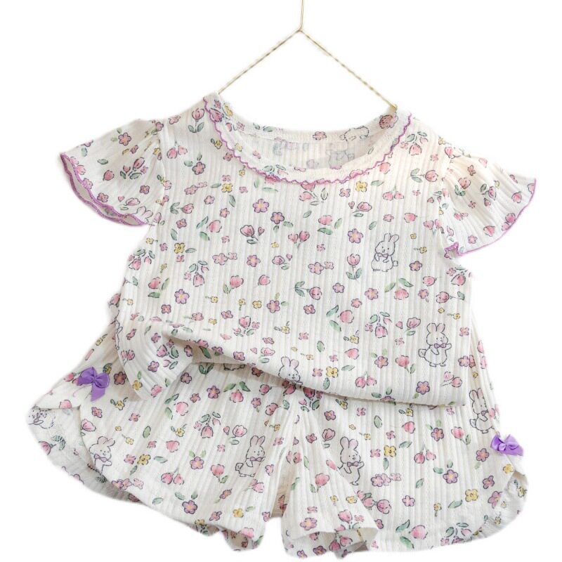 儿童睡衣夏季薄款宝宝短袖短裤纯棉空调服女童韩版碎花家居服套装